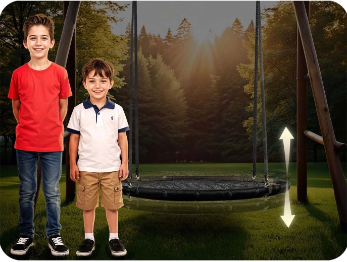 Eenvoudige verstelling van de ophangtouwen in het bereik van ca. 90–160 cm zorgt voor comfortabel en veilig schommelen voor verschillende leeftijden.