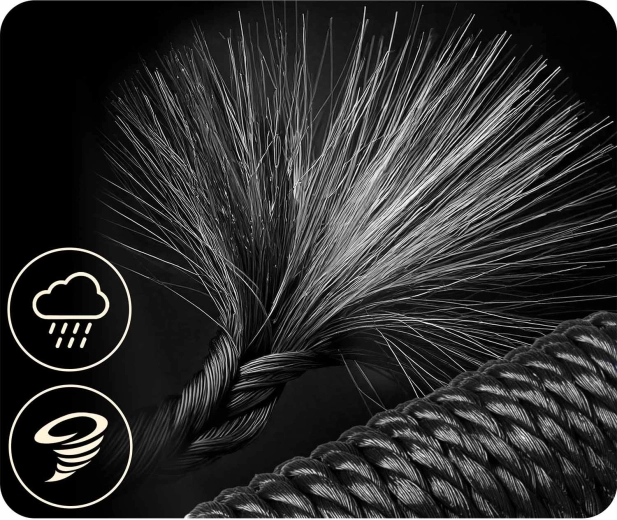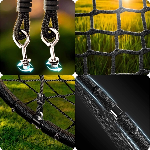De ronde stalen ring met beschermende PE-omvlechting en het sterke “spinnenweb”-net bieden een stabiele, comfortabele en veilige zit met een lange levensduur.
