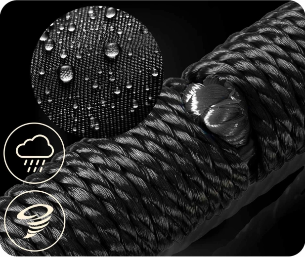 De dikte en kwaliteit van de PE-touwen zorgen voor weerstand tegen slijtage, vocht en zon. De schommel is makkelijk schoon te maken en klaar voor dagelijks buitengebruik.