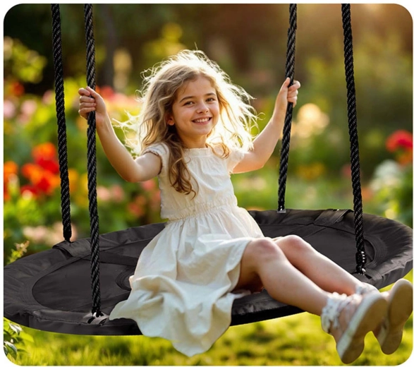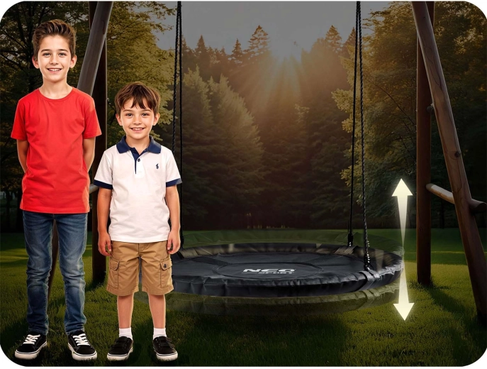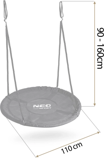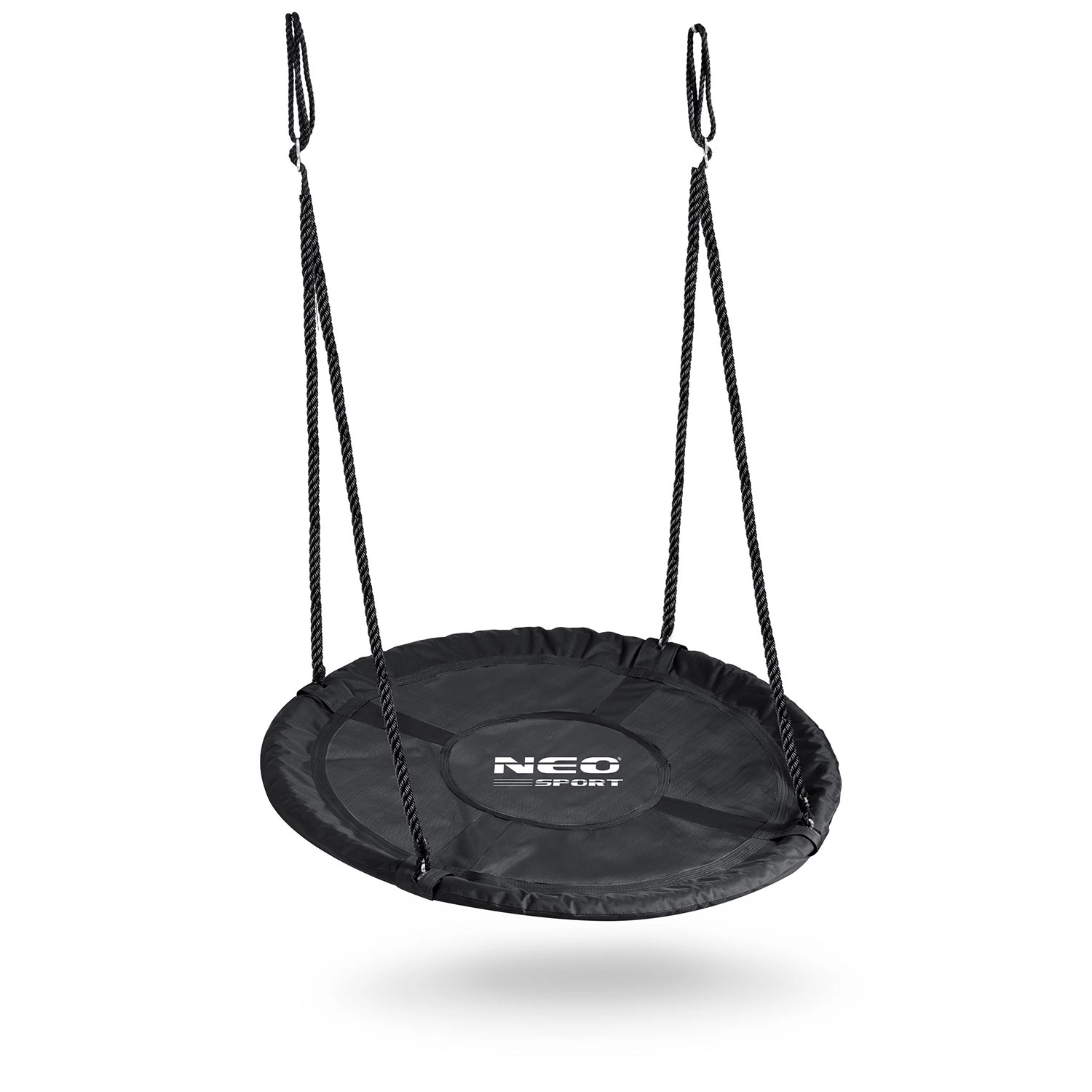 De ronde NEO-SPORT schommel met een diameter van 110 cm is een ideale keuze voor gezinnen die actieve ontspanning met veilige fun willen combineren. Het robuuste stalen frame met zachte PE-schuimbekleding en meervoudige stiksels biedt stabiliteit en een lange levensduur, terwijl de zitting van duurzaam Oxford 600D-polyester waterafstotend en makkelijk te reinigen is.