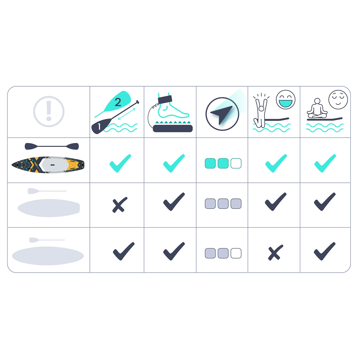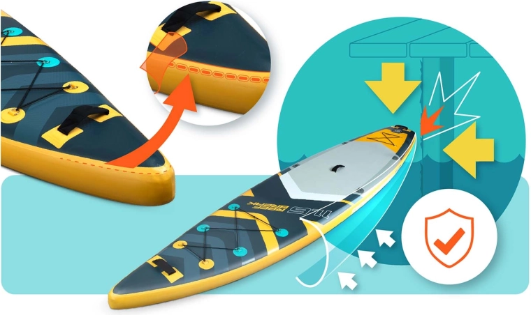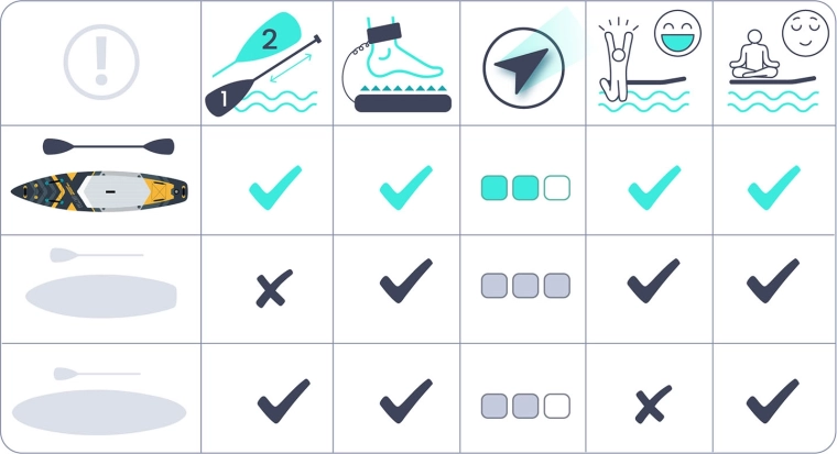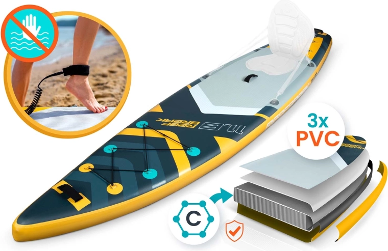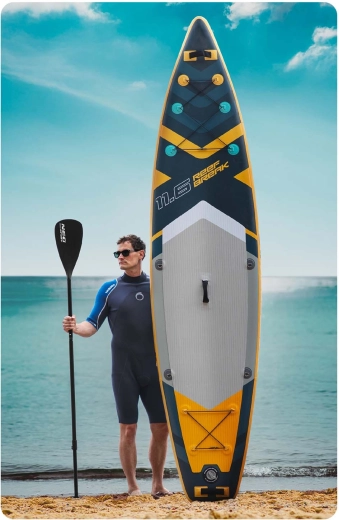 Het brede platform met een dikte van 15 cm, een antislip EVA-deckpad en drie richtingsvinnen zorgen voor uitstekende balans en controle – ideaal voor rustig water en kleine golven.