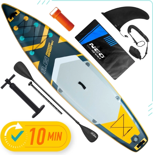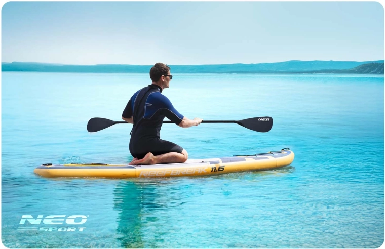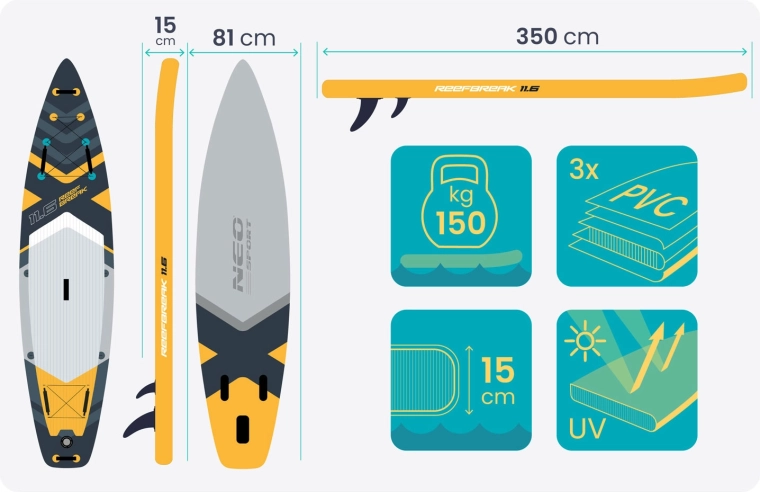 De Reefbreak 11'6 paddleboard is een perfecte keuze voor recreatieve peddelaars en gevorderde gebruikers die zekerheid, comfort en veelzijdigheid zoeken. Dankzij de dikte van 15 cm en de brede vorm biedt hij geweldige stabiliteit voor rustig water, kleine golven en zelfs yoga op het water. De antislip EVA-deckpad houdt je voeten stevig op hun plaats, terwijl 3 richtingsvinnen zorgen voor nauwkeurige koersvastheid en eenvoudig manoeuvreren.