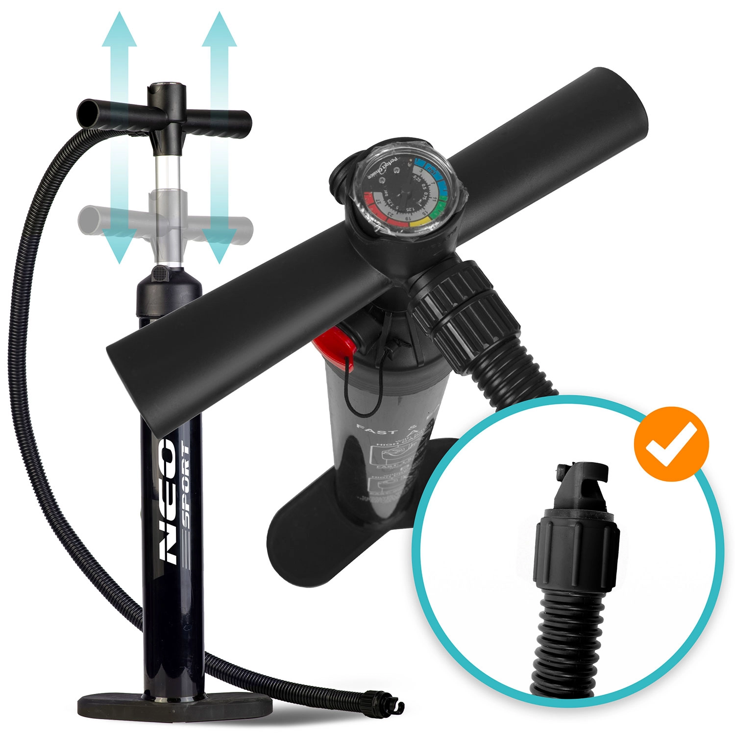 • Snelle voorbereiding: dubbelwerkend pompen voor vlot oppompen zonder moeite.