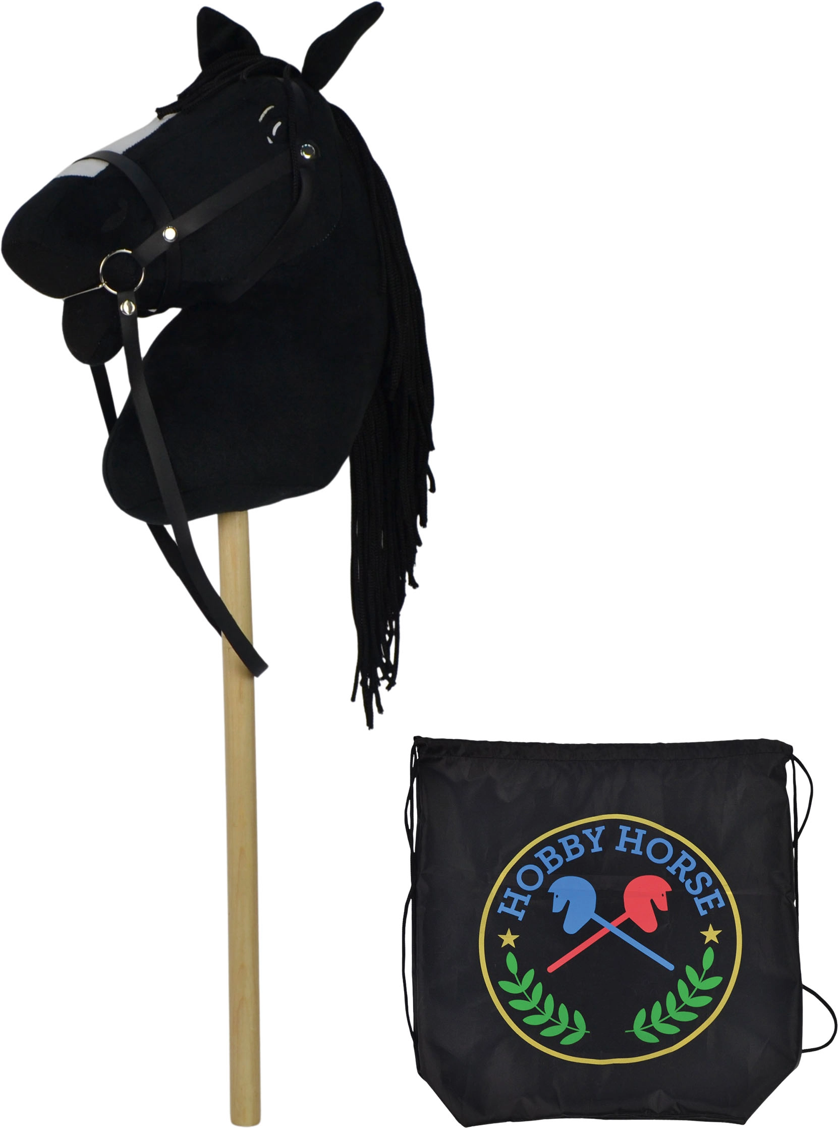 Zwarte hobbelstokpaard met geluiden en rugzak 73 cm