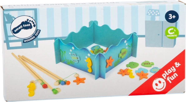 Ontdek de magie van de onderwaterwereld met het magnetische visspel small foot in 3D-uitvoering. Met houten hengels met magneet vangen kinderen bonte visjes en zeepaardjes, terwijl ze hun stevige greep, concentratie en coördinatie trainen. Ideaal om met vrienden of ouders te spelen.