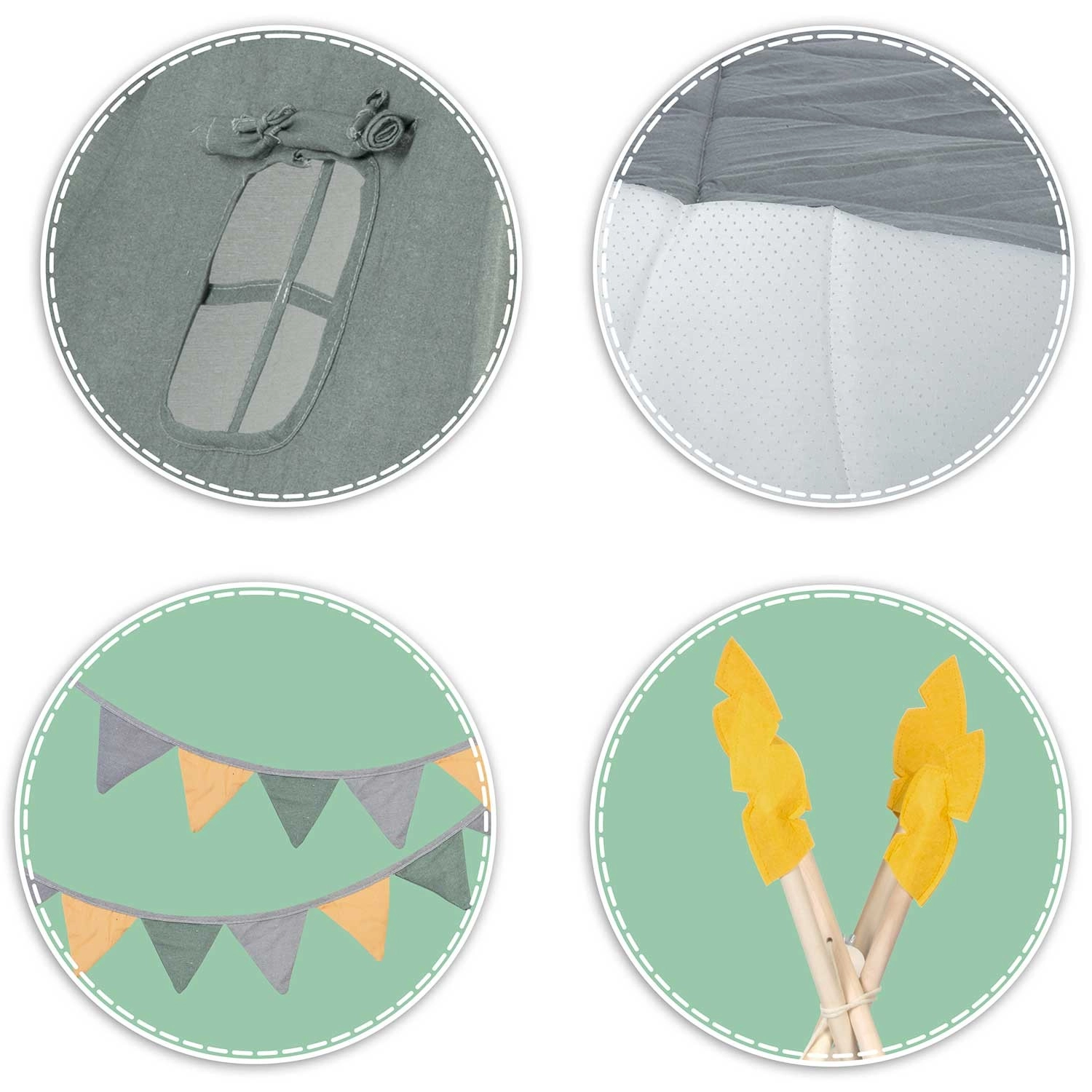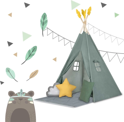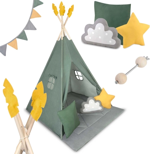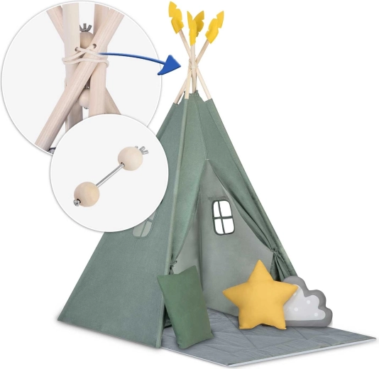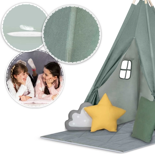 Creëer een eigen toevluchtsoord voor je kind – de stijlvolle Nukido kinder-tipi in het groen. De tent van hoogwaardige, natuurlijke materialen biedt zachte en duurzame stof, een stabiele constructie met stabilisator, eenvoudig op- en afbouwen en een rijke uitrusting. In de set vind je 3 kussens, een dikke, isolerende antislipmat, raampjes met rolgordijnen en decoraties. Ideaal voor spelen, lezen en ontspannen in de geest van Montessori.