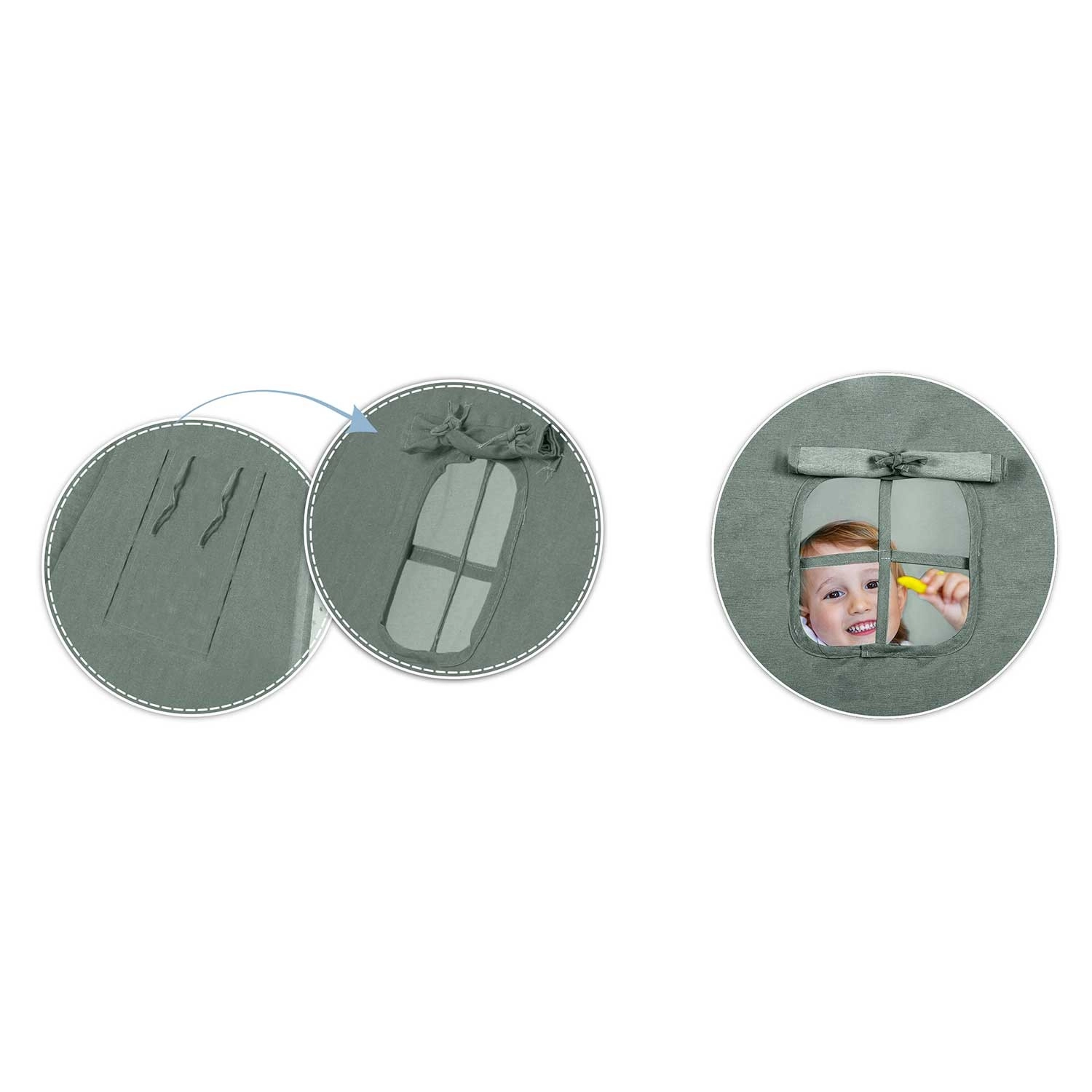 Het raampje met rolgordijn en striklinten zorgt voor ventilatie, verstoppertje spelen en naar buiten kijken. Deurflappen strik je eenvoudig vast voor een gemakkelijke toegang.