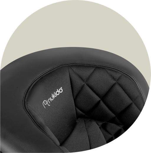Nukido Louis is een veilig en elegant autostoeltje met zachte stiksels voor dagelijks reizen. Dankzij het ISOFIX-systeem is de installatie snel en altijd correct, terwijl SIP (Side Impact Protection) de bescherming van hoofd, nek en wervelkolom bij een zijdelingse botsing verhoogt. Het stoeltje groeit mee met je kind dankzij de hoofdsteun met 12 standen en 2 ligstanden voor een comfortabele positie op elke leeftijd.