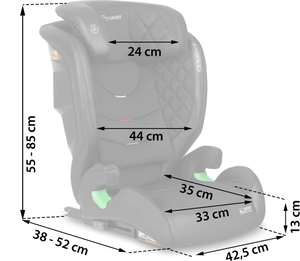 Het autostoeltje Nukido Louis biedt een combinatie van premium veiligheid, comfort en eenvoudige ISOFIX-installatie voor kinderen met een lengte van 100–150 cm (ca. 4–12 jaar). Het heeft SIP-zijbescherming, 12 standen voor de hoofdsteun, 2 ligstanden en een eenvoudig afneembare hoes die wasbaar is. Voldoet aan de strenge norm ECE R129 / i-Size en kan ook worden gebruikt als los zitverhoger voor oudere kinderen.