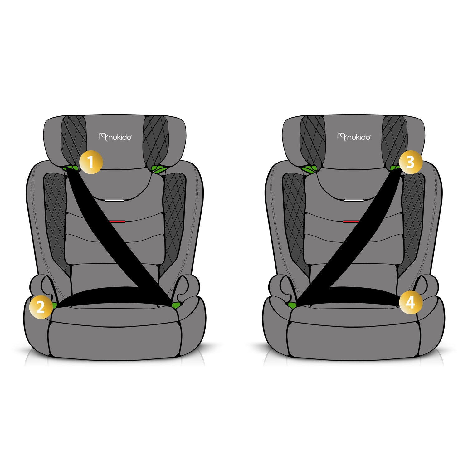 Het autostoeltje Nukido Louis groeit mee met je kind van ongeveer 4 tot 12 jaar. Dankzij het ISOFIX-systeem is de montage snel en altijd correct, terwijl SIP (Side Impact Protection) de bescherming van hoofd, nek en wervelkolom bij een zijwaartse botsing verhoogt. 12 niveaus voor de hoofdsteun en 2-traps hellingsverstelling zorgen voor comfortabel reizen in verschillende leeftijdsfases.