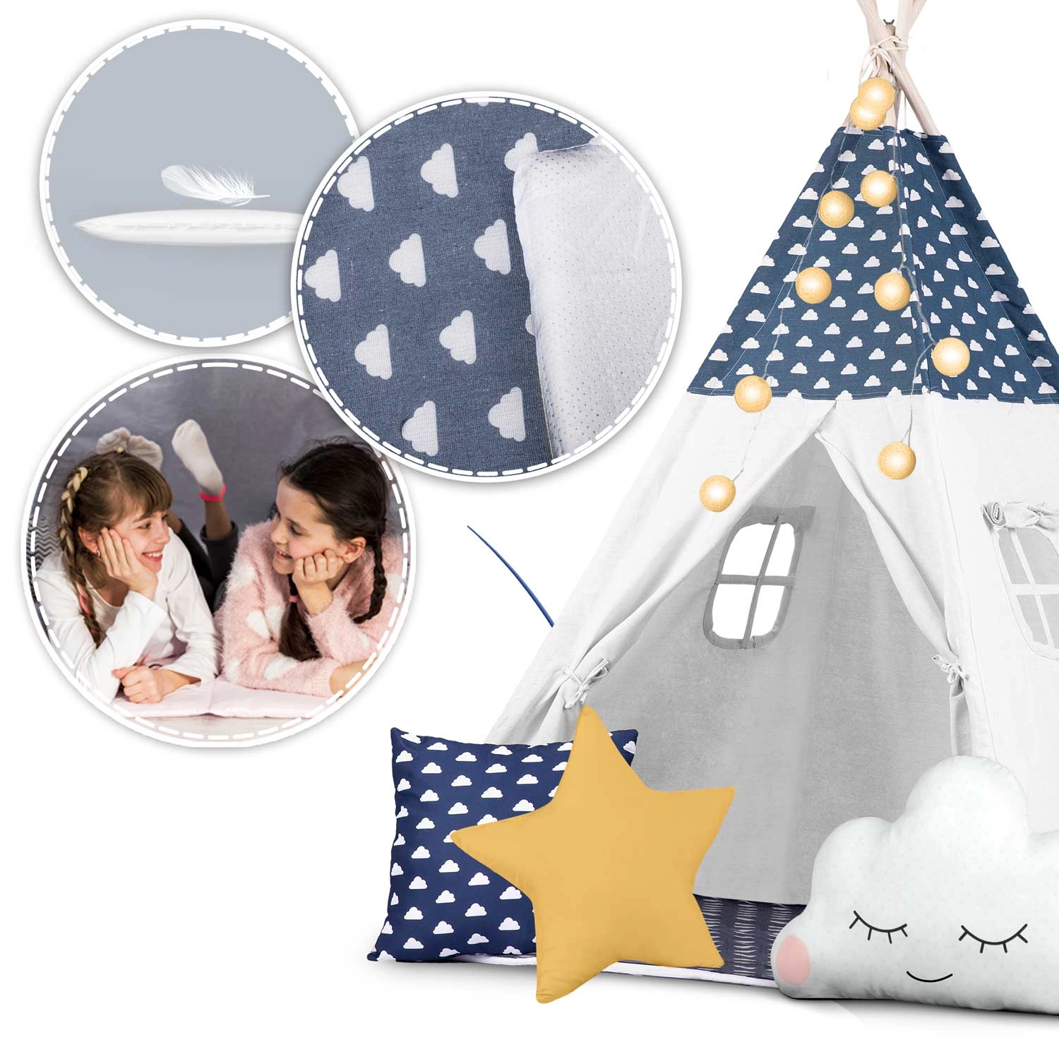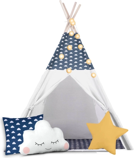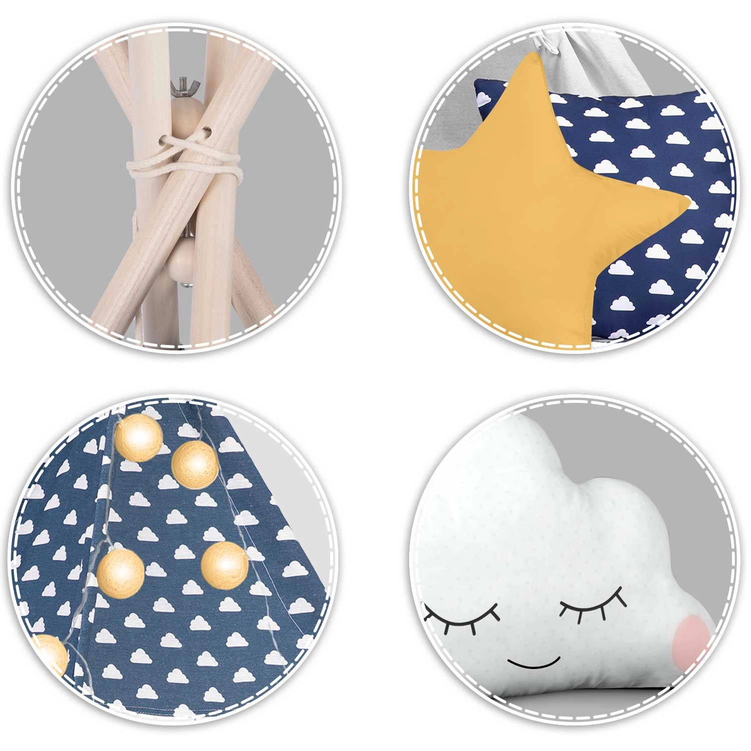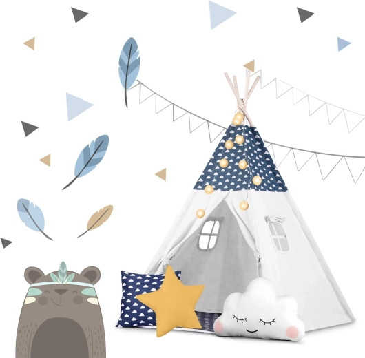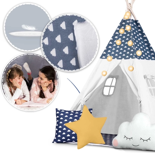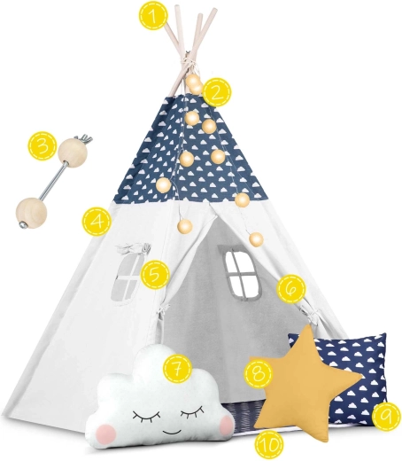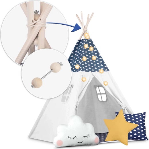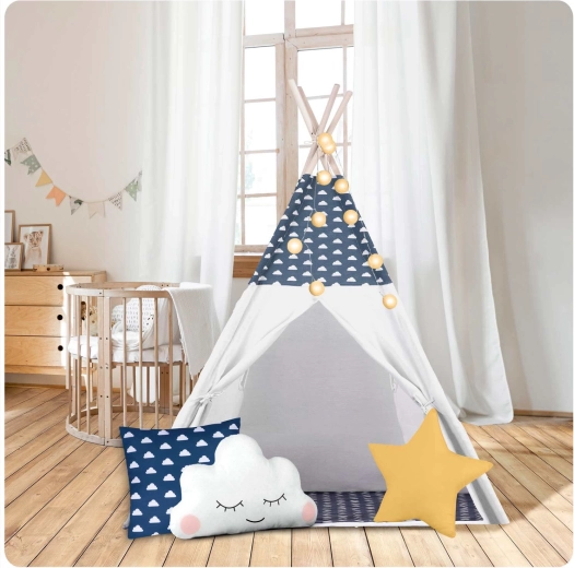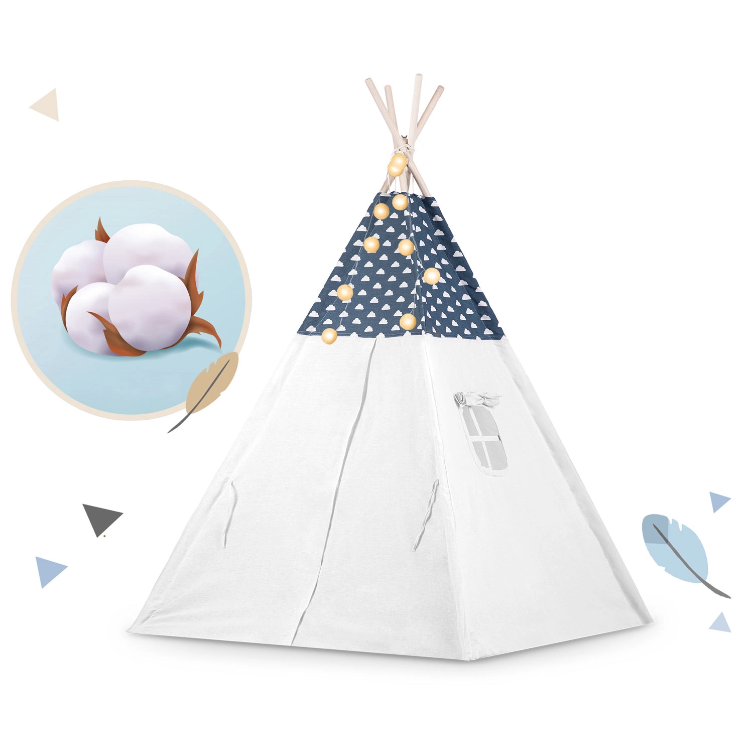 De Nukido kinder-tipi is ontworpen in Montessori-stijl om zelfstandig spel, fantasie en rustig lezen te stimuleren. Premium 100% katoen met hoger gramgewicht voelt prettig aan, ademt uitstekend en creëert een veilige omgeving om te ontspannen. Houten stokken van grenen zorgen voor stevigheid, terwijl lampjes de tent een knusse sfeer geven.