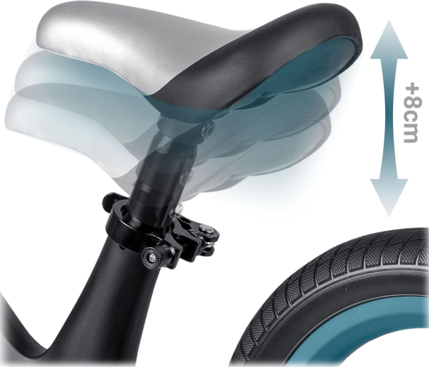 Het zachte foamen zadel biedt een hoogteverstelling van ca. 35–41 cm voor de juiste zitpositie en een langere gebruiksduur terwijl je kind groeit.