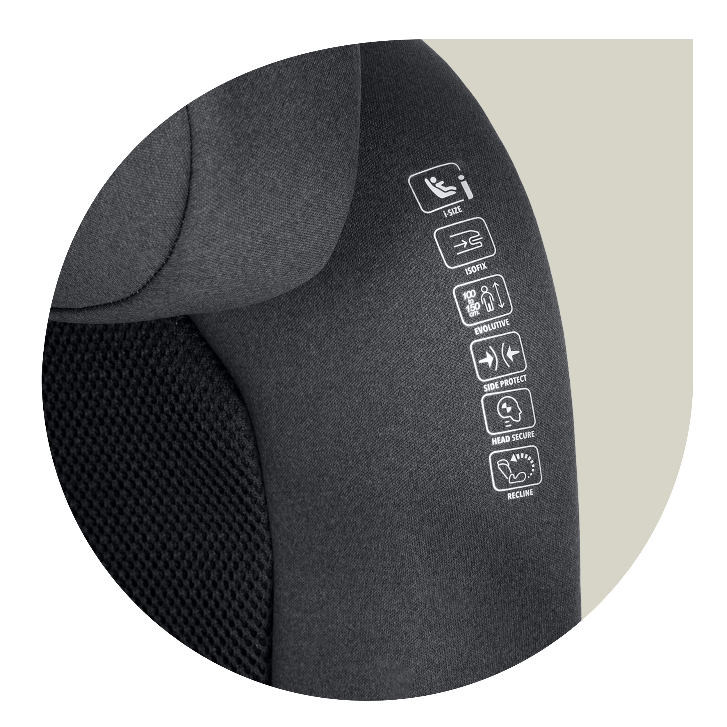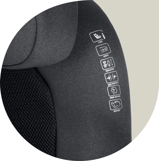 Snelle en altijd correcte installatie dankzij ISOFIX. Voldoet aan de strenge norm ECE R129 (i-Size) voor kinderen met een lengte van 100–150 cm.