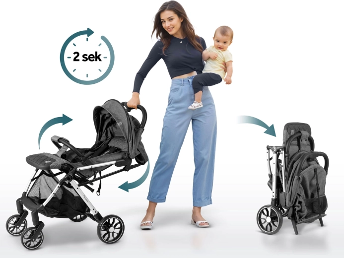 Geniet van comfortabele wandelingen in de stad en op onverharde paden met de sportieve kinderwagen Nukido Paseo. Deze lichte en compacte kinderwagen vouw je met één hand in 2 seconden op tot de grootte van handbagage. Biedt 360° zwenkwielen vooraan met vering, grote achterwielen voor stabiliteit, een 5-punts veiligheidsgordel, een verstelbare rugleuning tot ligstand, een verstelbare beensteun en een uitbreidbare kap met regen- en UV-bescherming. Inclusief regenhoes en voetenzak voor gebruik het hele jaar door.