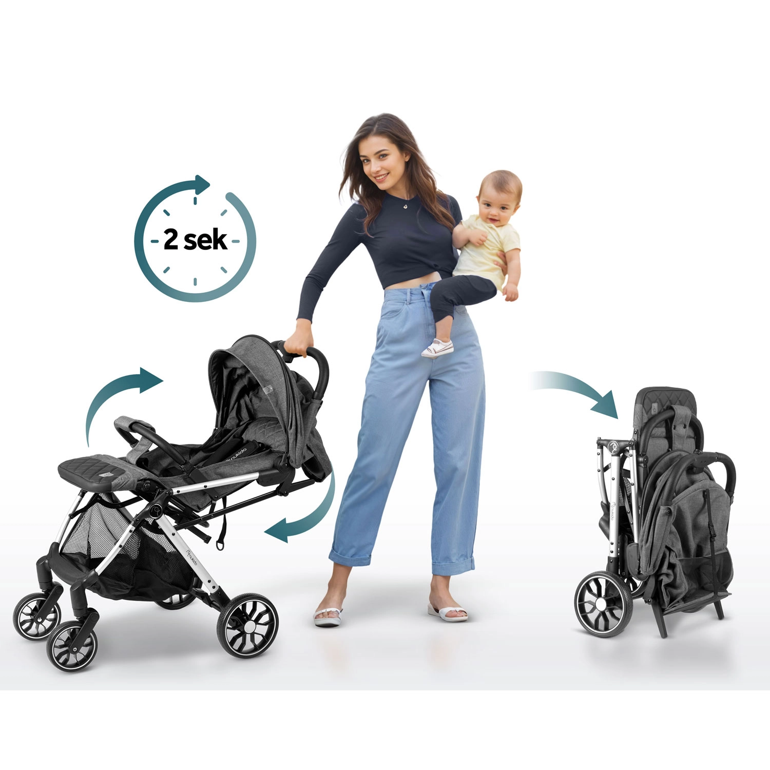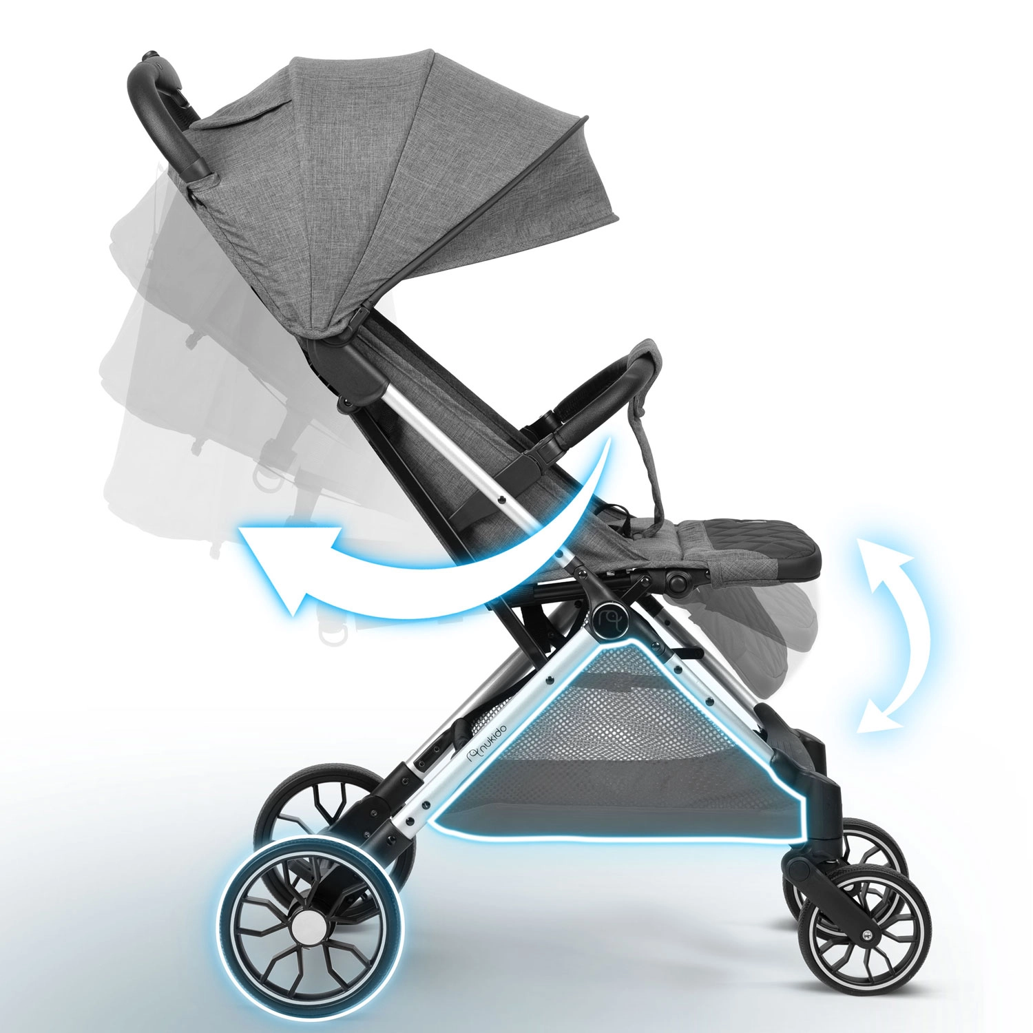 De Nukido Paseo is een betrouwbare metgezel vanaf de geboorte tot 36 maanden. Dankzij het aluminium frame is hij stevig en toch licht (slechts 7,3 kg) en eenvoudig te bedienen in smalle straatjes en op oneffen terrein. Opvouwen met één hand tot een compact formaat maakt hem ideaal voor reizen met de auto en het vliegtuig. De praktische ruime mand onder de zitting biedt plaats aan alle reisbenodigdheden.