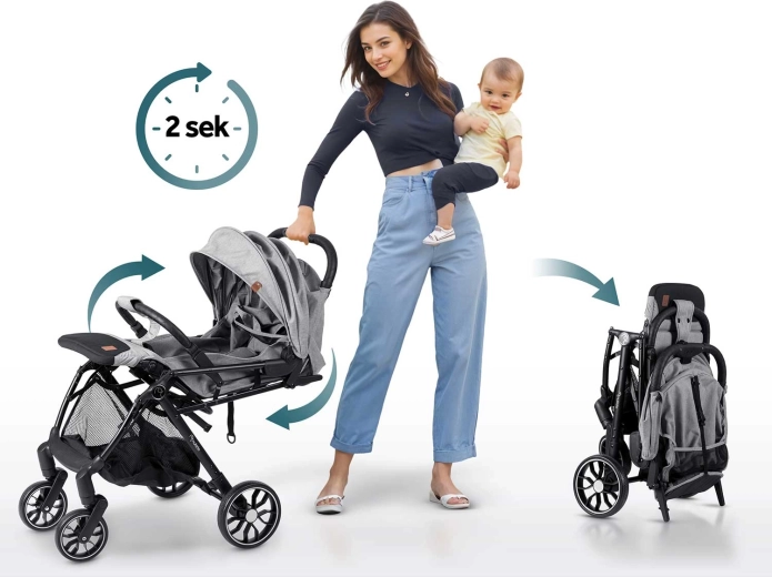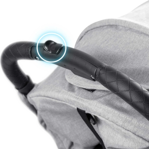 De intuïtieve knop maakt snel en veilig inklappen mogelijk – ideaal voor het ov, de auto en bij de gate van het vliegtuig. Ingeklapt is hij compact en gemakkelijk te dragen.