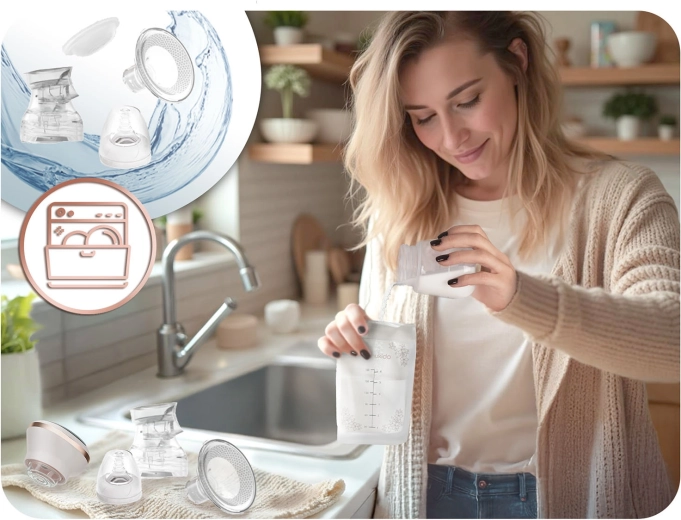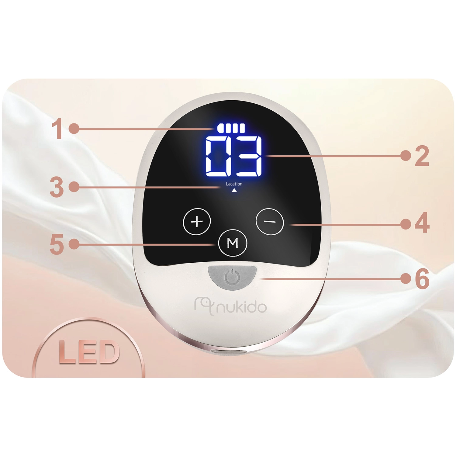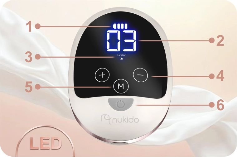 Het goed afleesbare LED‑display met touchpaneel maakt bediening overdag en ’s nachts eenvoudig – u ziet de fase, het stimulatieniveau en de batterijstatus. Dankzij de geïntegreerde Li‑ion batterij en USB‑C opladen krijgt u tot 6 uur mobiliteit om thuis, op het werk en onderweg te kolven. De stille werking verstoort de slaap van de baby niet.