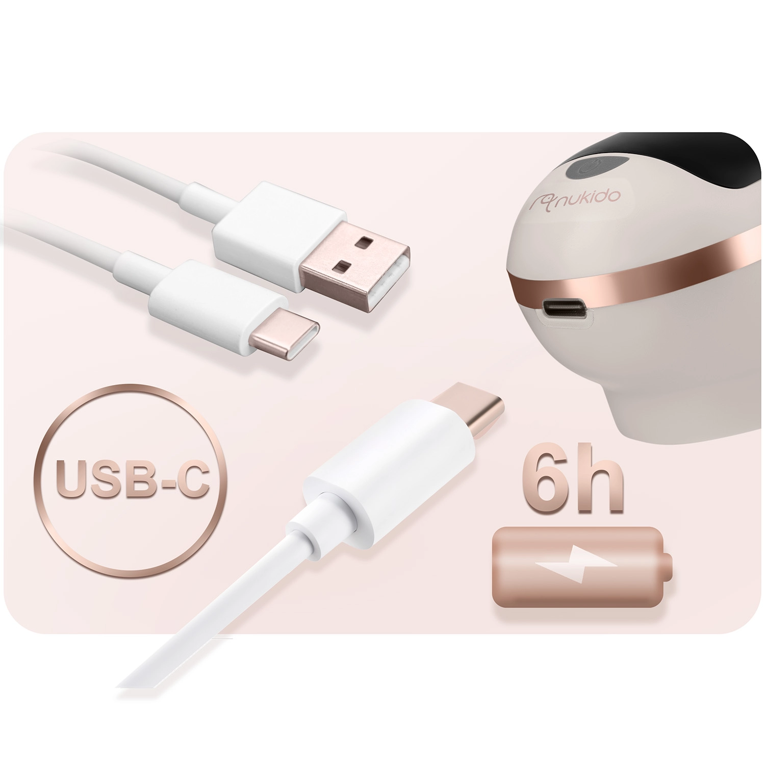 De geïntegreerde Li‑ion batterij biedt tot 6 uur gebruik. De stille werking maakt discreet kolven mogelijk thuis, op het werk en onderweg.