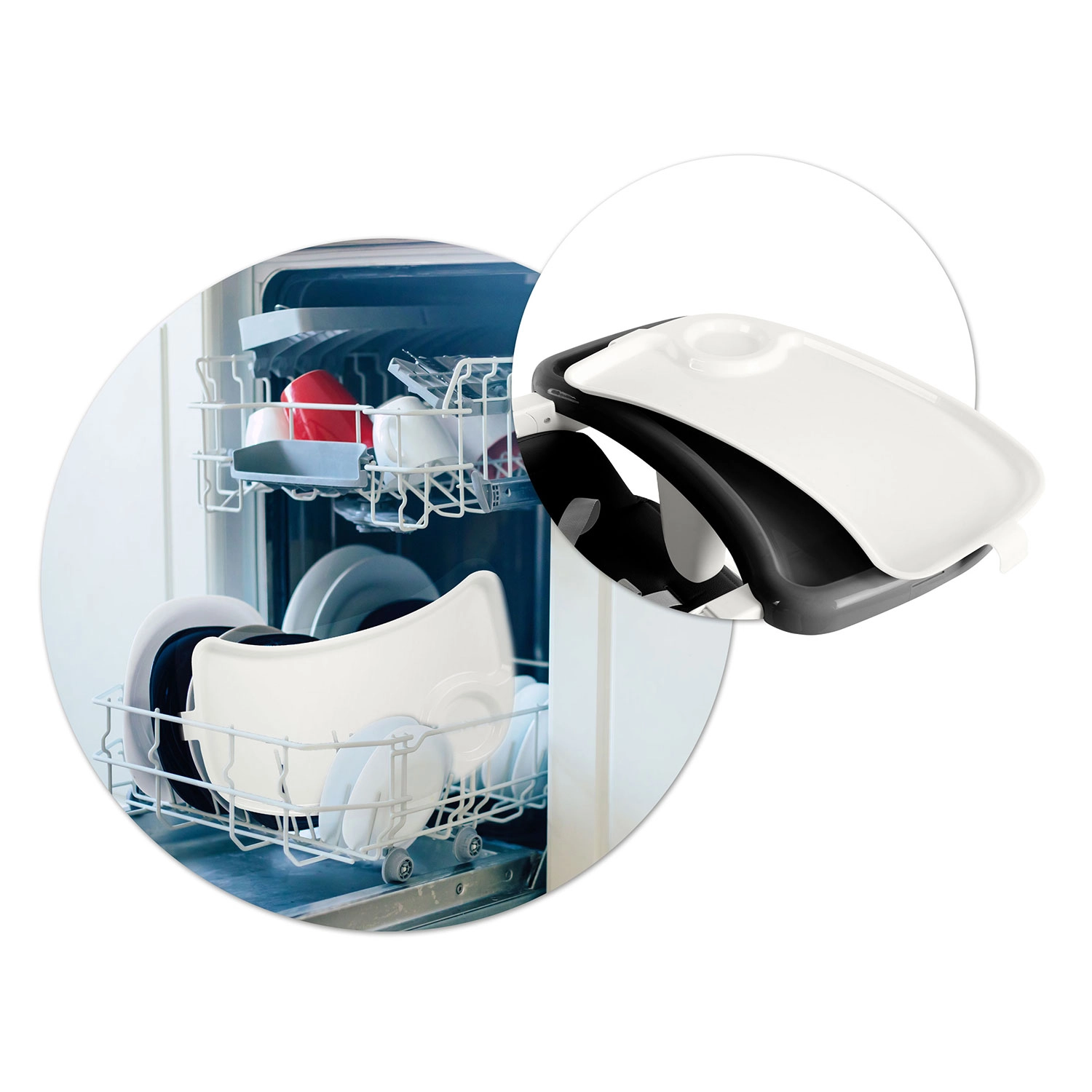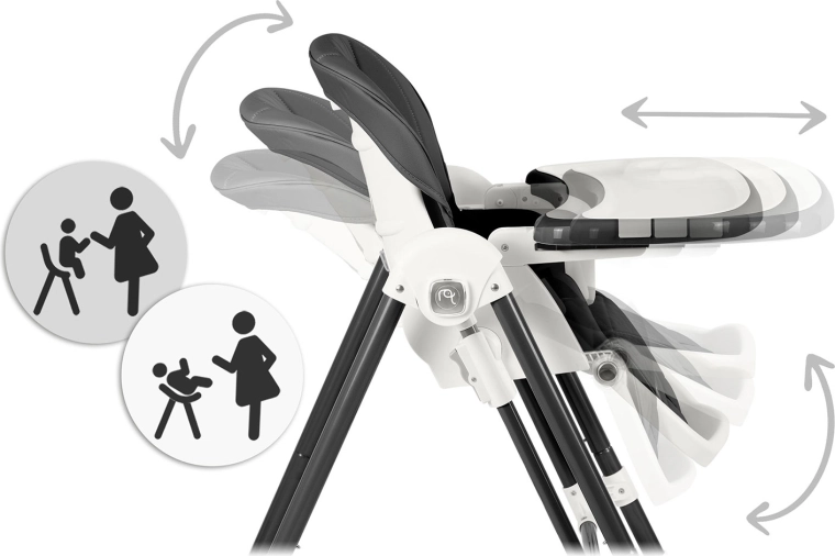 De bovenste inzet van het blad kan worden verwijderd en afgespoeld; de bekleding neemt geen vuil op – even afnemen en de stoel is in een mum van tijd weer schoon.