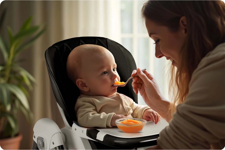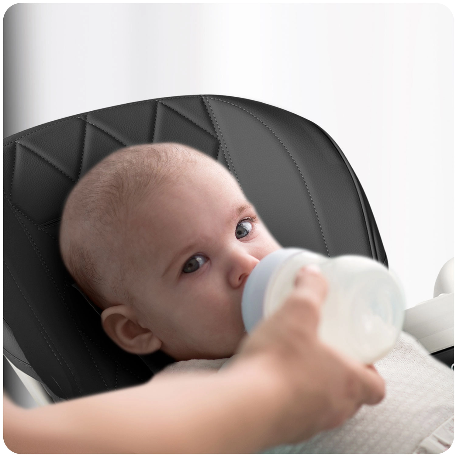 Eén helper voor elke dag: comfortabel voeden, rustige ontspanning en zacht wiegen. De rugleuning kantelt soepel tot ligstand voor comfort vanaf de geboorte.