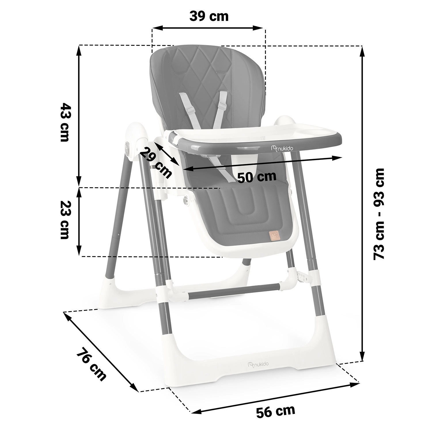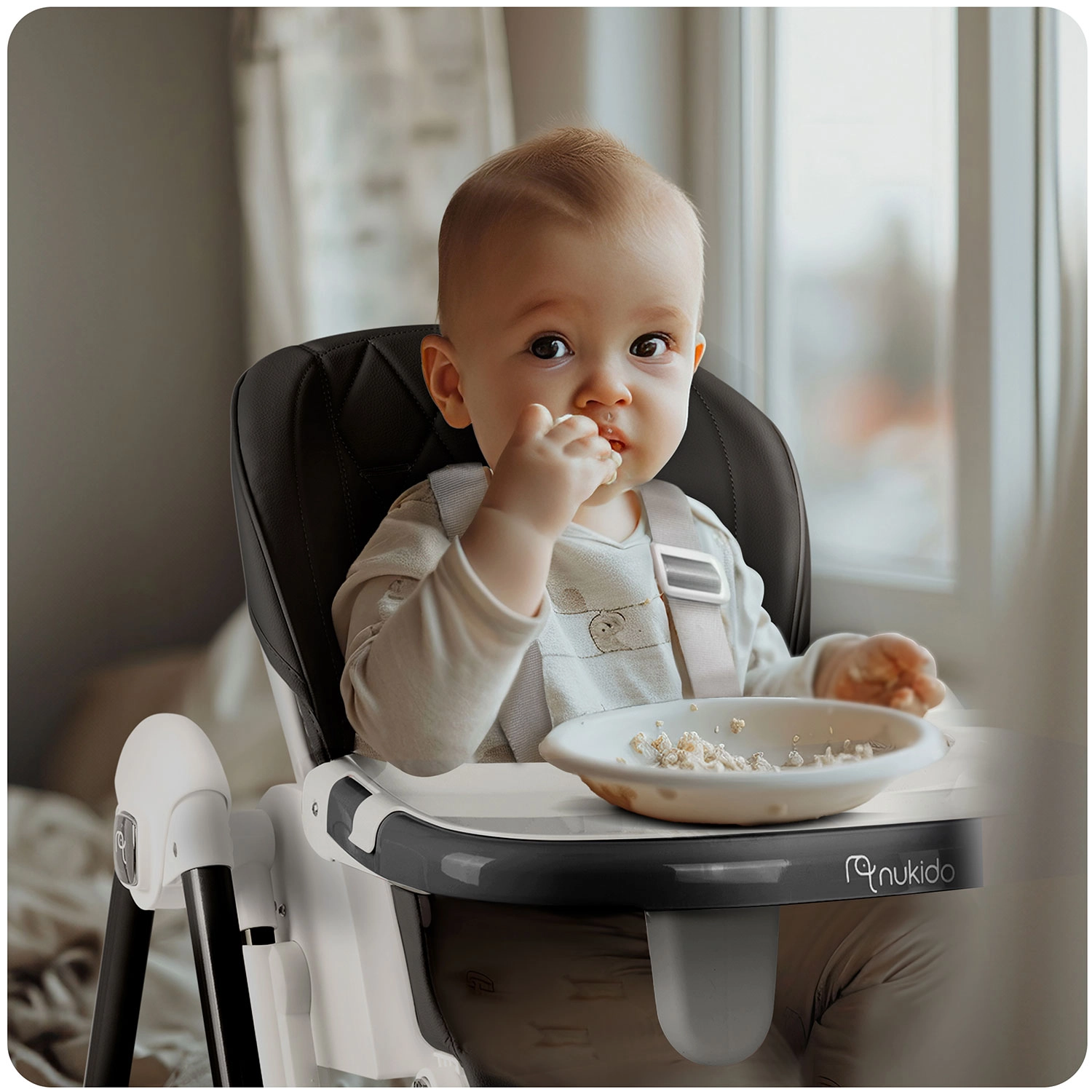 De multifunctionele kinderstoel Nukido Elite 3-in-1 groeit met je baby mee: hij dient als kinderstoel, ligstoeltje en wipstoeltje. Hij biedt een verstelbare rugleuning tot ligstand, een verstelbaar en afneembaar eetblad, in hoogte verstelbare zitting en een 5-punts veiligheidsgordel. Gemakkelijk schoon te maken dankzij de uitneembare bovenste inzet van het blad en de bekleding die geen vuil opneemt. Stabiele stalen poten en de mogelijkheid om compact op te vouwen zorgen voor comfort en veiligheid, thuis en onderweg.