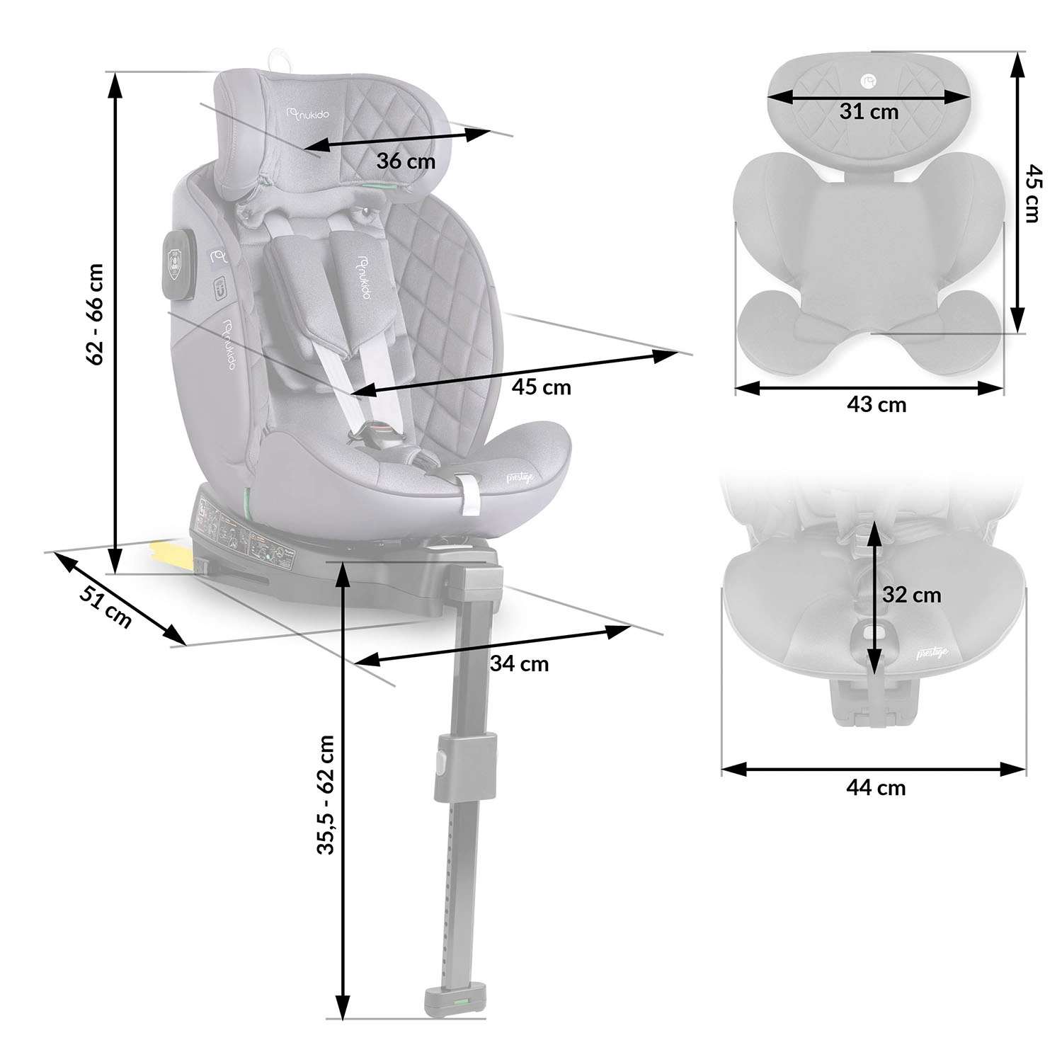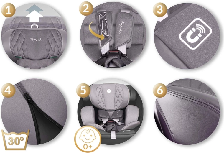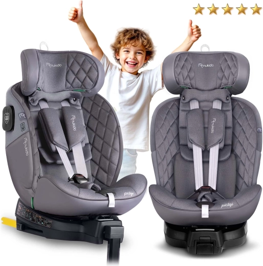 De Nukido Prestige Line autostoel combineert geavanceerde veiligheidsvoorzieningen met maximaal comfort en gebruiksgemak voor dagelijks reizen. Dankzij de 360° draaibare basis kun je je kind gemakkelijk van opzij vastzetten, terwijl SIP – Side Impact Protection met versterkte zijkanten hoofd, nek en wervelkolom beschermt bij een zijdelingse impact. De constructie voldoet aan de ECE R129 (i-Size) norm en groeit mee met je kind vanaf de geboorte tot ongeveer 12 jaar.