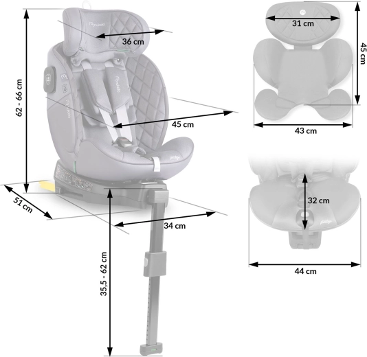 Installatie is snel en zeker dankzij ISOFIX en de stabilisatiesteun (tot 100 cm). De vijfvoudige hellingsverstelling zorgt voor comfort tijdens het slapen en 12 posities van de hoofdsteun passen de zitting perfect aan de actuele lengte van het kind aan. Voor de allerkleinsten is er een pasgeborenen-inzet, vijfpuntsgordels met antislipbeschermers en praktische magneten voor het opzij houden van de gordels om het vastzetten zonder wirwar te vergemakkelijken.