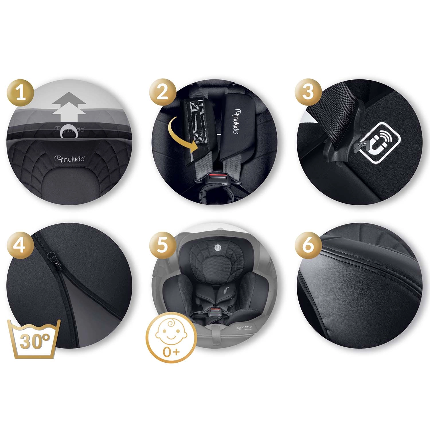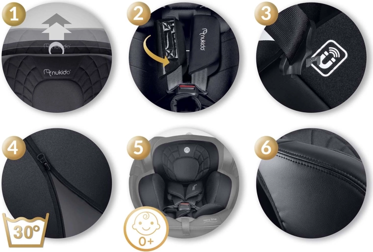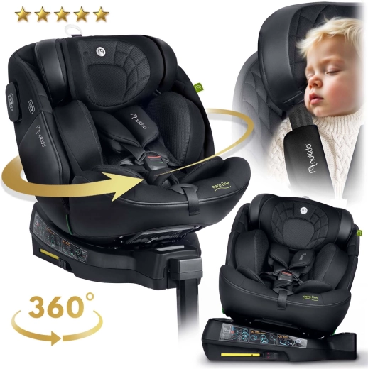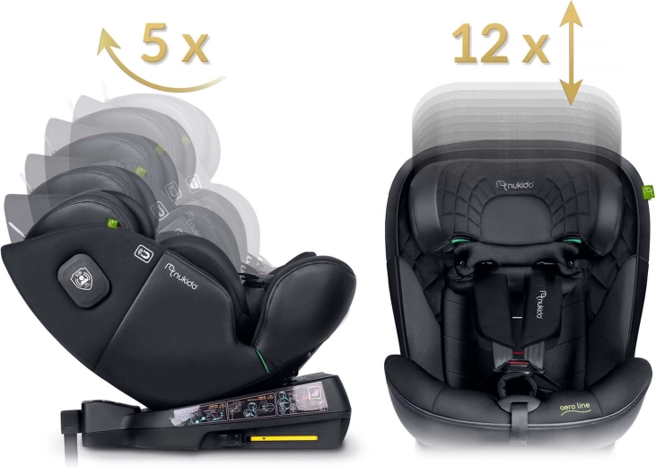 NUKIDO Aero Line is een premium autostoeltje dat de hoogste i-Size veiligheidsnormen combineert met langdurig comfort vanaf de geboorte tot ongeveer 12 jaar. Dankzij het 360° draaisysteem gord je je kind gemakkelijk zijwaarts vast en kies je de rijrichting RWF/FWF naar leeftijd en lengte. Zacht, doorgestikt textiel, ergonomische vormgeving en een inleg voor pasgeborenen zorgen voor comfort, ook op lange ritten.