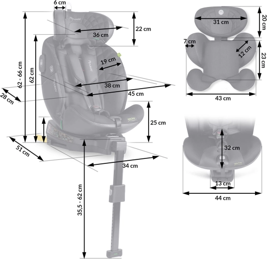 Geavanceerde SIP – Side Impact Protection met zijdelingse energie-absorbers, een steunpoot en stevige ISOFIX-ankers bieden stabiliteit en bescherming bij een botsing. De 12‑positie hoofdsteun groeit mee met je kind, 5 hellingsposities verhogen het slaapcomfort en de vijfpuntsgordel met antisliphoezen blijft veilig op zijn plaats. De afneembare hoes is wasbaar voor eenvoudige verzorging.