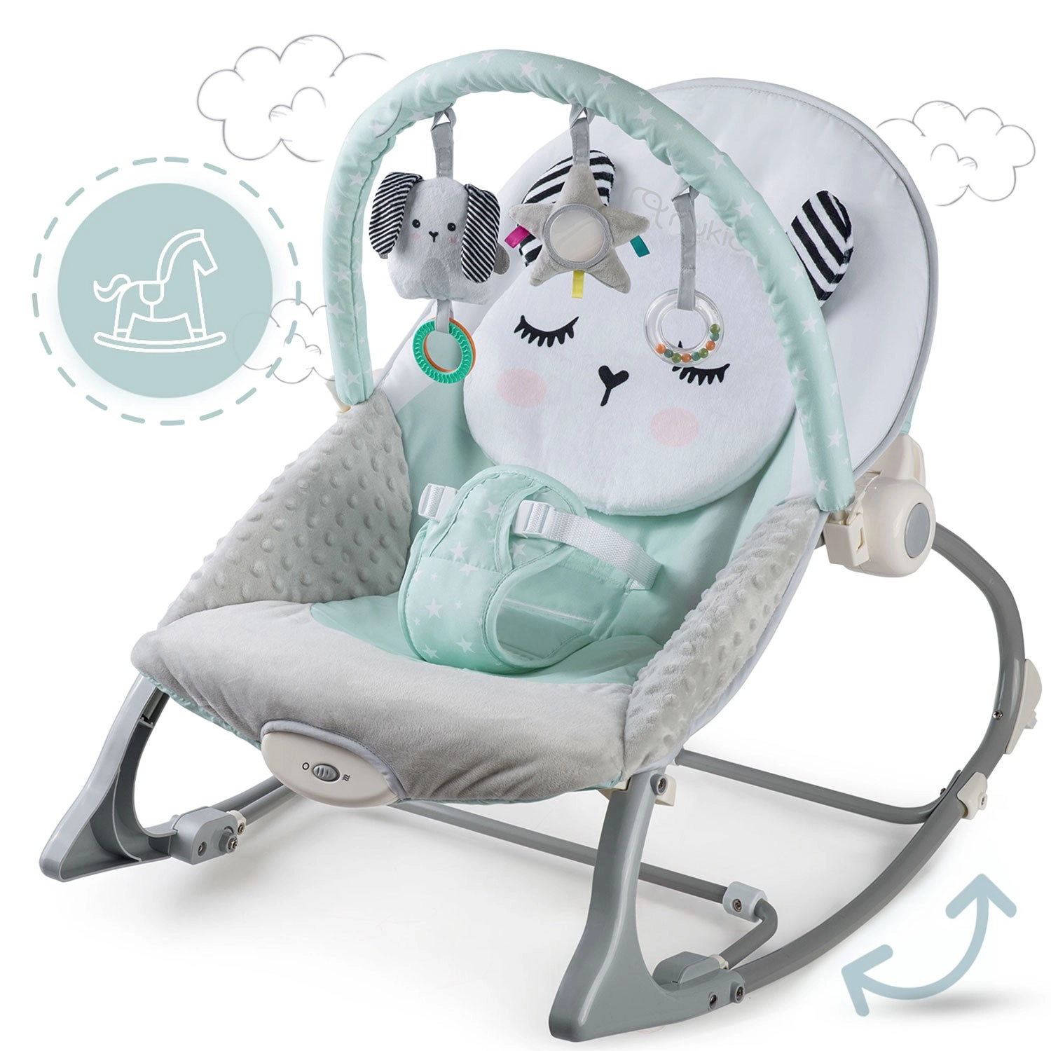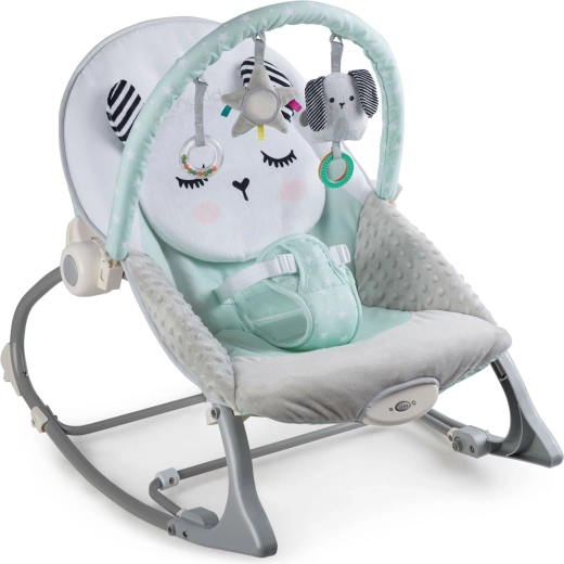 Het multifunctionele babyligstoeltje NUKIDO in mint brengt rust voor je kleintje en vrije handen voor ouders. Het biedt kalmerende vibraties, zacht schommelen met de mogelijkheid tot vergrendeling, een afneembare speelboog met speeltjes voor zintuiglijke stimulatie en zachte, comfortabele bekleding. Voor de veiligheid zorgen 3-puntsgordels en antislipvoetjes.