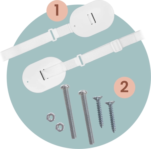 De montage aan het bedframe is snel en zeker dankzij schroeven en sterke riemen met duurzame gespen.