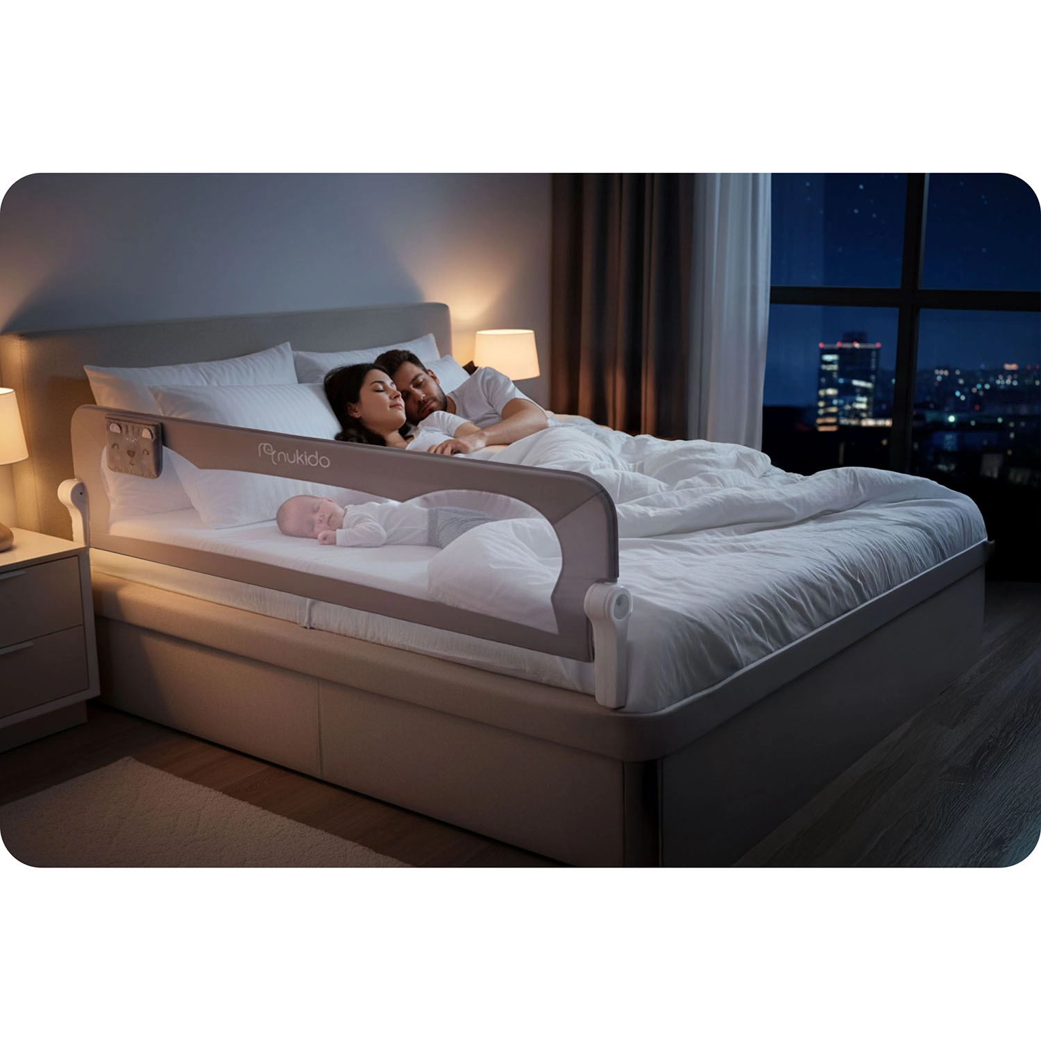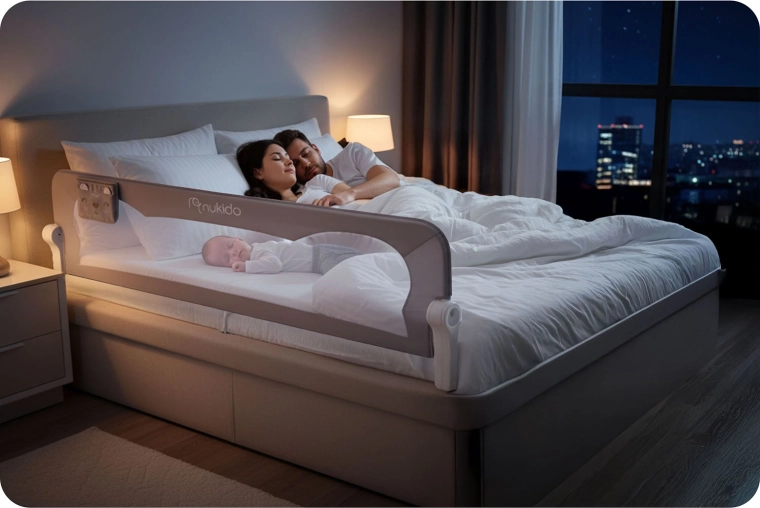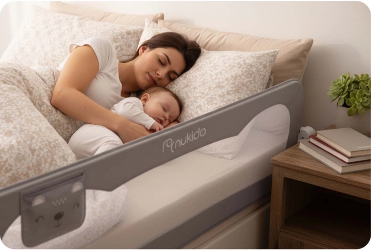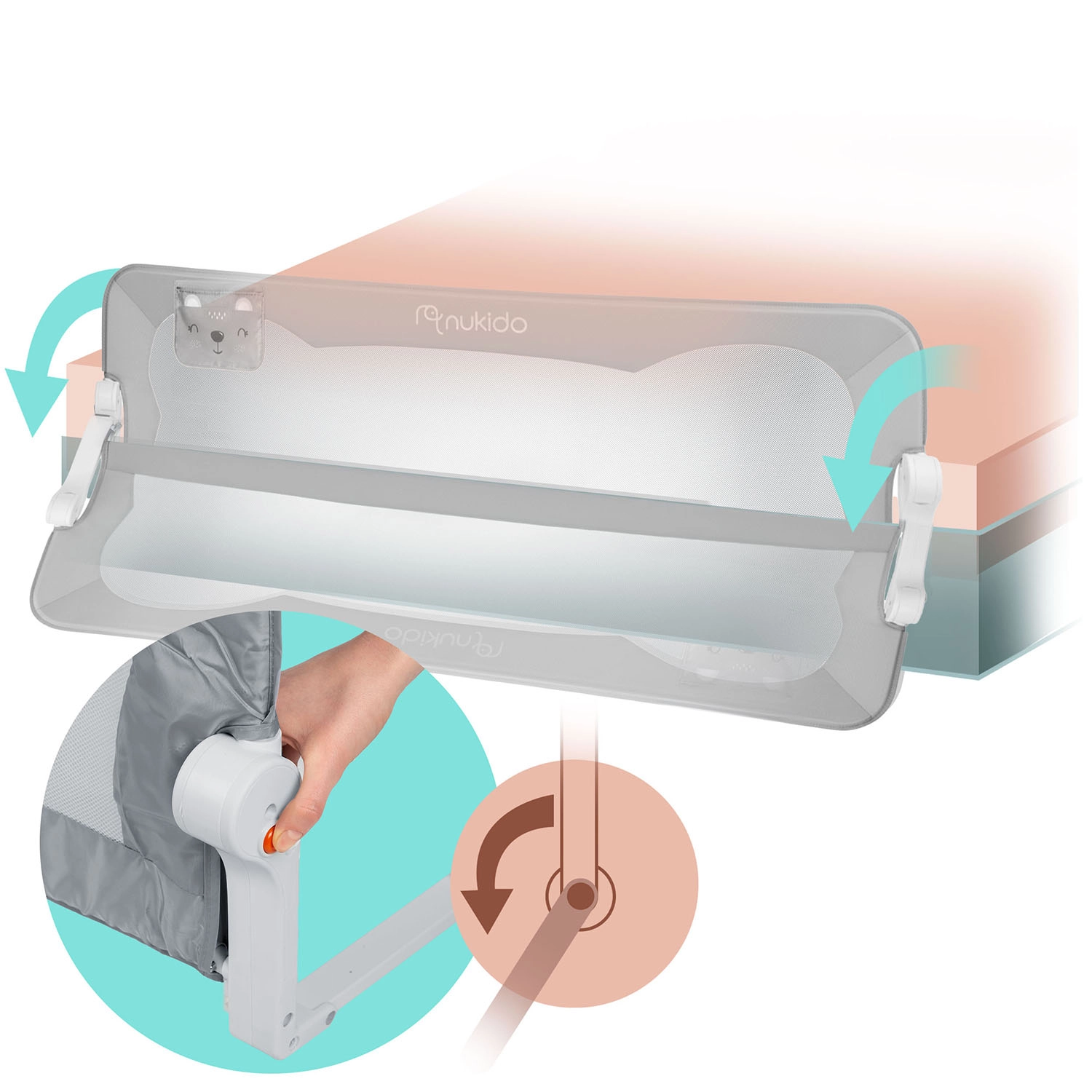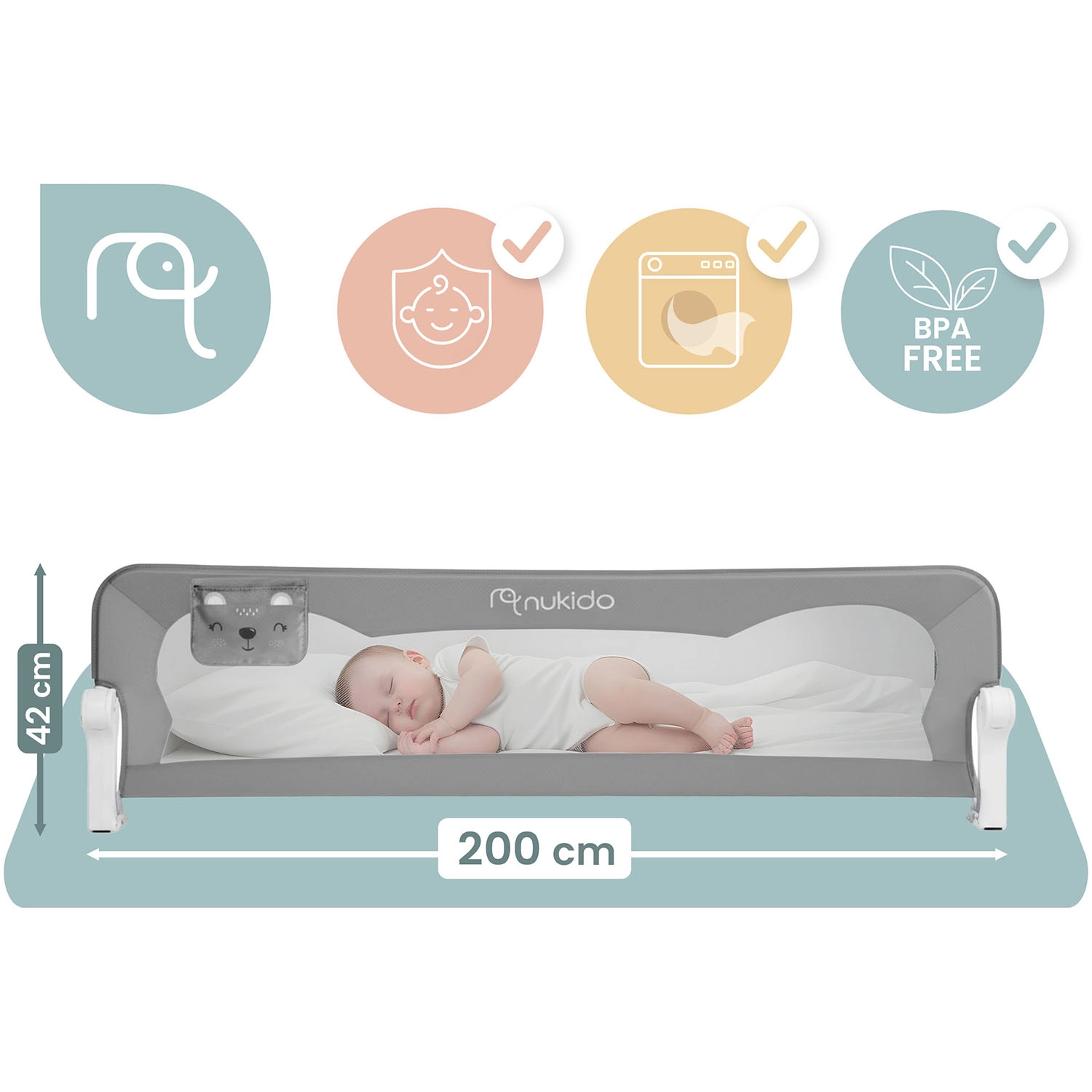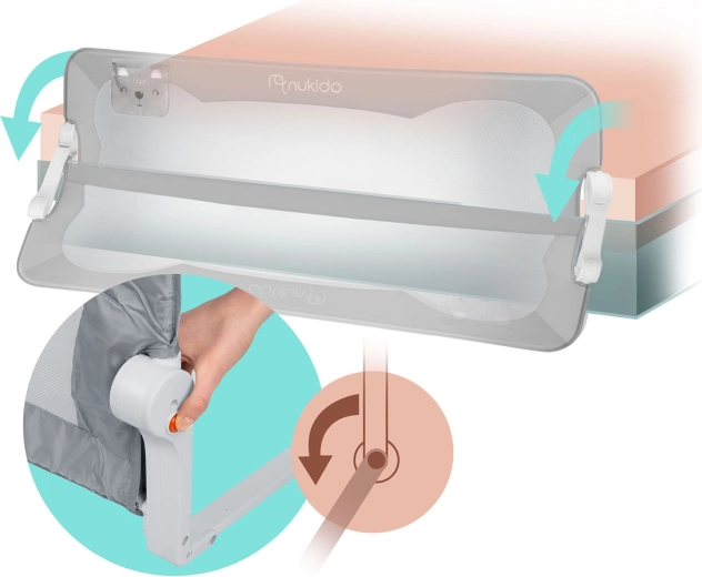Het Nukido bedhek van 200 cm is een praktische en stijlvolle oplossing voor grotere bedden en samen slapen. Het lichte maar sterke stalen frame in combinatie met het ademende mesh zorgt voor stabiliteit en tegelijk voor visueel contact met het kind. Het geïntegreerde SafetyLock-slot beschermt tegen onbedoeld neerklappen en dankzij het 180° draaimechanisme klap je het hek eenvoudig omlaag zonder demontage.