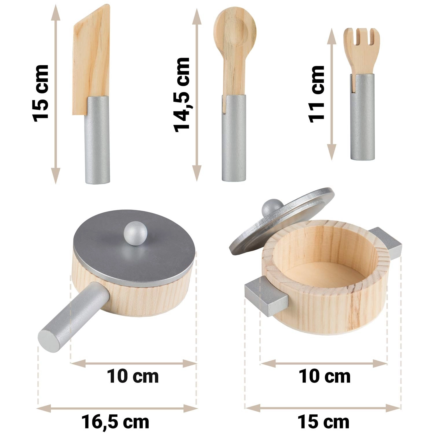 De kookplaten en het fornuis met draaibare sensoren en knoppen nemen kinderen mee in een fantasiewereld. Ze kunnen de temperatuur “regelen” en hun fijne motoriek oefenen.