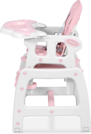 Praktische en stijlvolle kinderstoel 5-in-1 RICOKIDS Sinco in het roze groeit met je kind mee van 6 tot 36 maanden. Biedt vijf configuraties voor voeden, spelen en leren, heeft een gemakkelijk afneembare en schoon te maken bekleding van eco-leer, een afneembaar blad en 5-puntsgordels. Dankzij wieltjes met rem verplaats je hem moeiteloos en de verstelbare rugleuning zorgt voor comfort tijdens het eten en rusten.