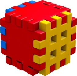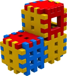 Getande randen en roosteroppervlakken zorgen voor een stevige verbinding van de stukken en maken het bouwen van simpele 3D-vormen, blokken en torens mogelijk.