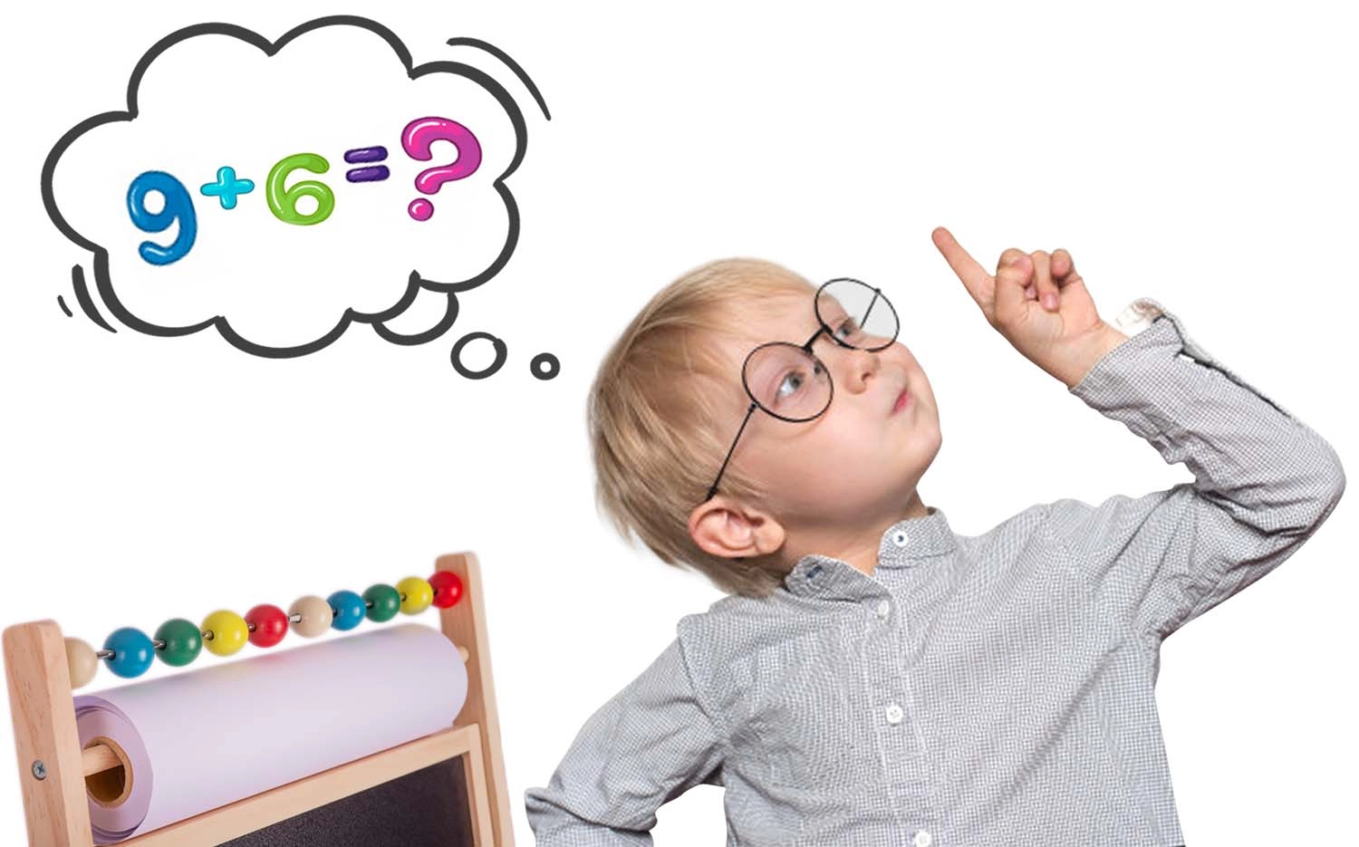 - Papierrol 20 m, uitwisbare stiften, kleurkrijtjes, spons, magnetische letters en cijfers, telraam, montagematerialen