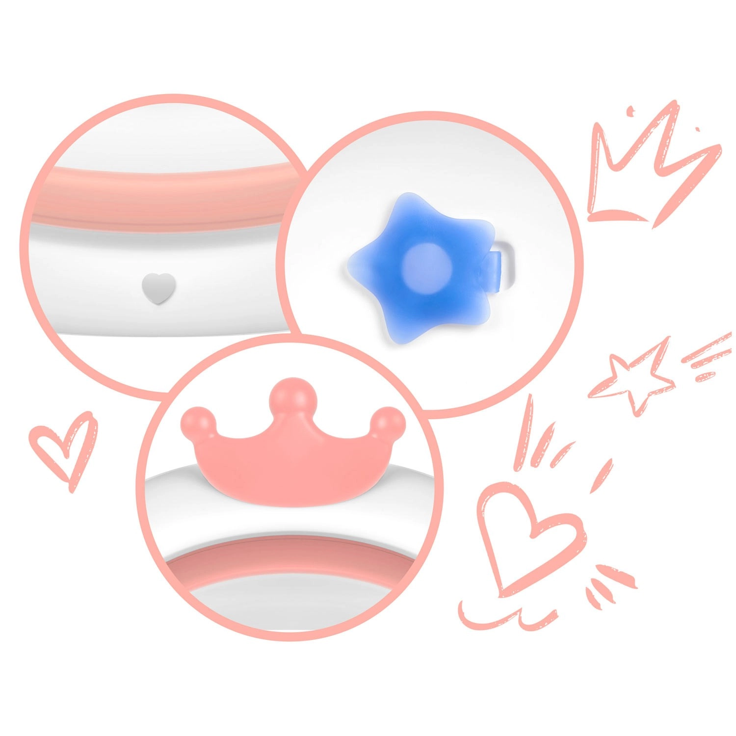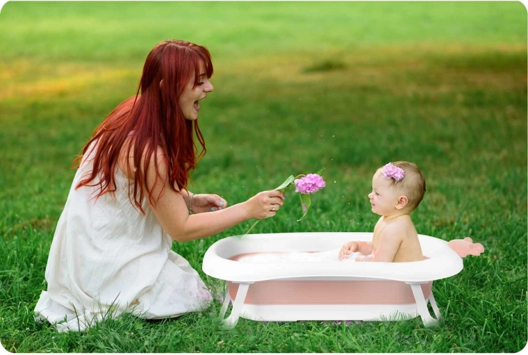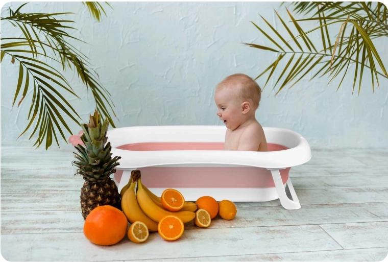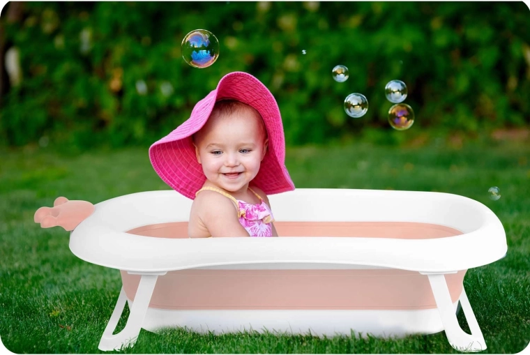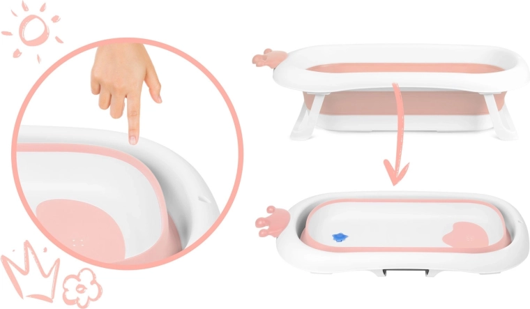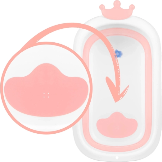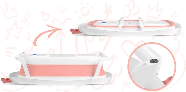 Dit opvouwbare babybadje in wit-roze uitvoering is ontworpen voor comfortabel en veilig badderen vanaf de eerste levensdagen. Dankzij de stabiele uitklapbare poten en antislip-elementen klapt het tijdens het baden niet in en blijft het stevig op zijn plaats. De slimme stop in stervorm waarschuwt door van kleur te veranderen zodra het water boven 38 °C komt, zodat u de temperatuur onder controle houdt.