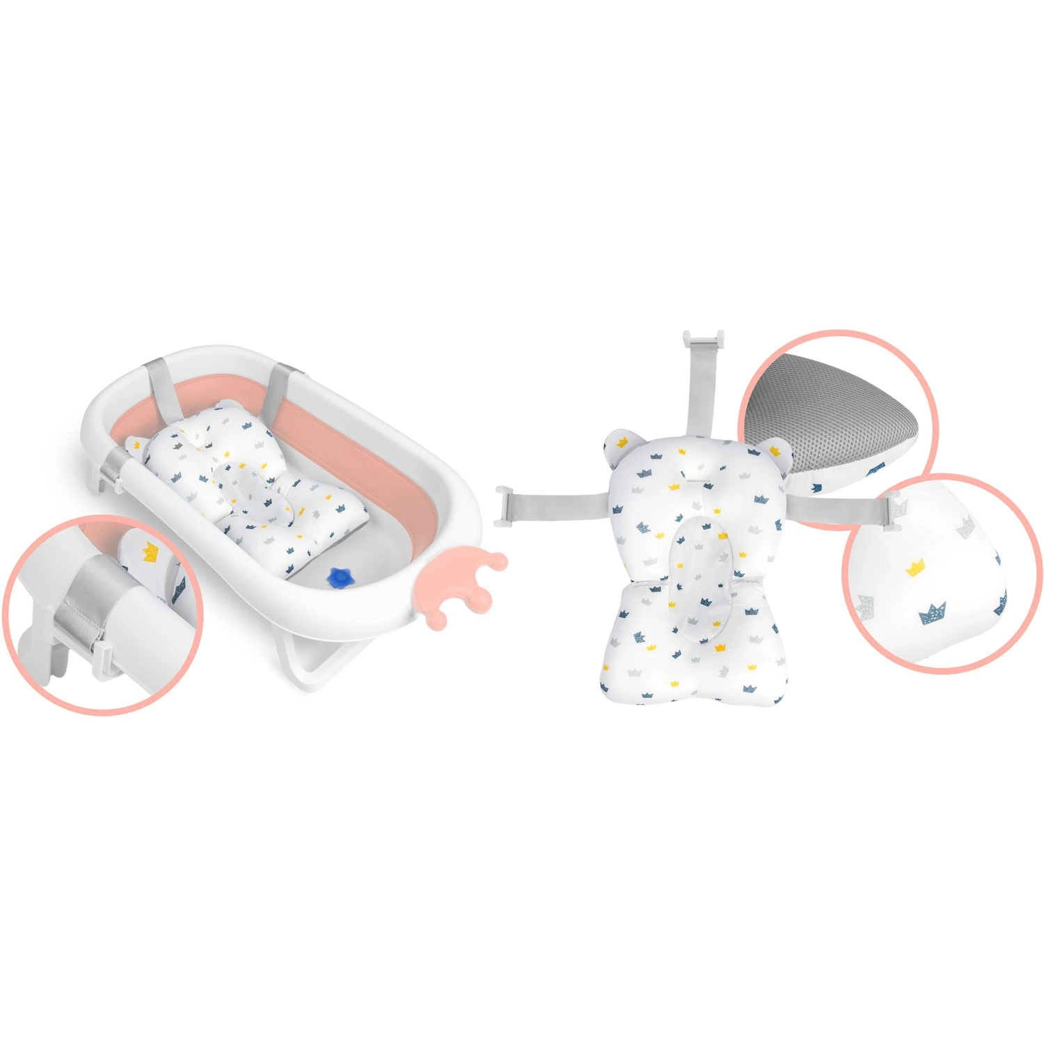 Opvouwbaar babybadje met kussentje, wit/roze