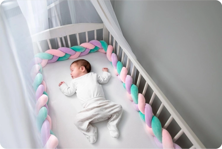 Dikke gevlochten strengen dempen voorzichtig stoten tegen de spijlen en verhogen de veiligheid van pasgeborenen en peuters.