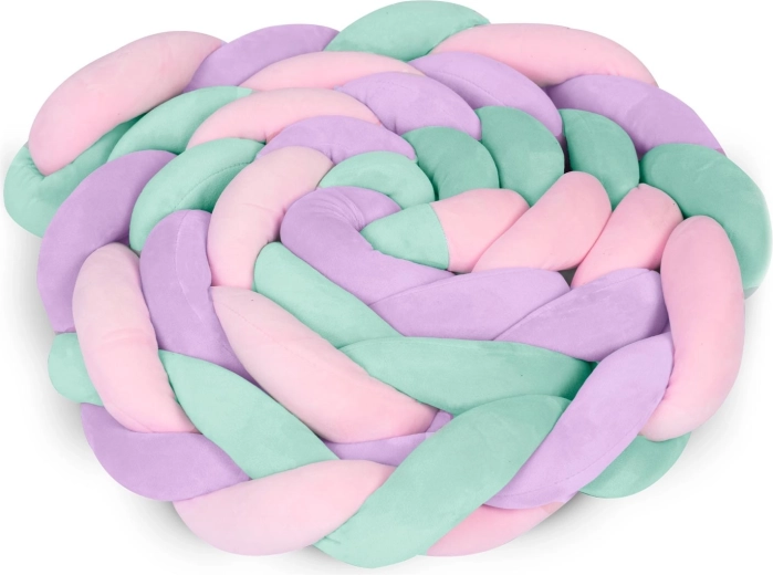 Gevlochten bedbumper Ricokids 3 m – mint-roze‑paars