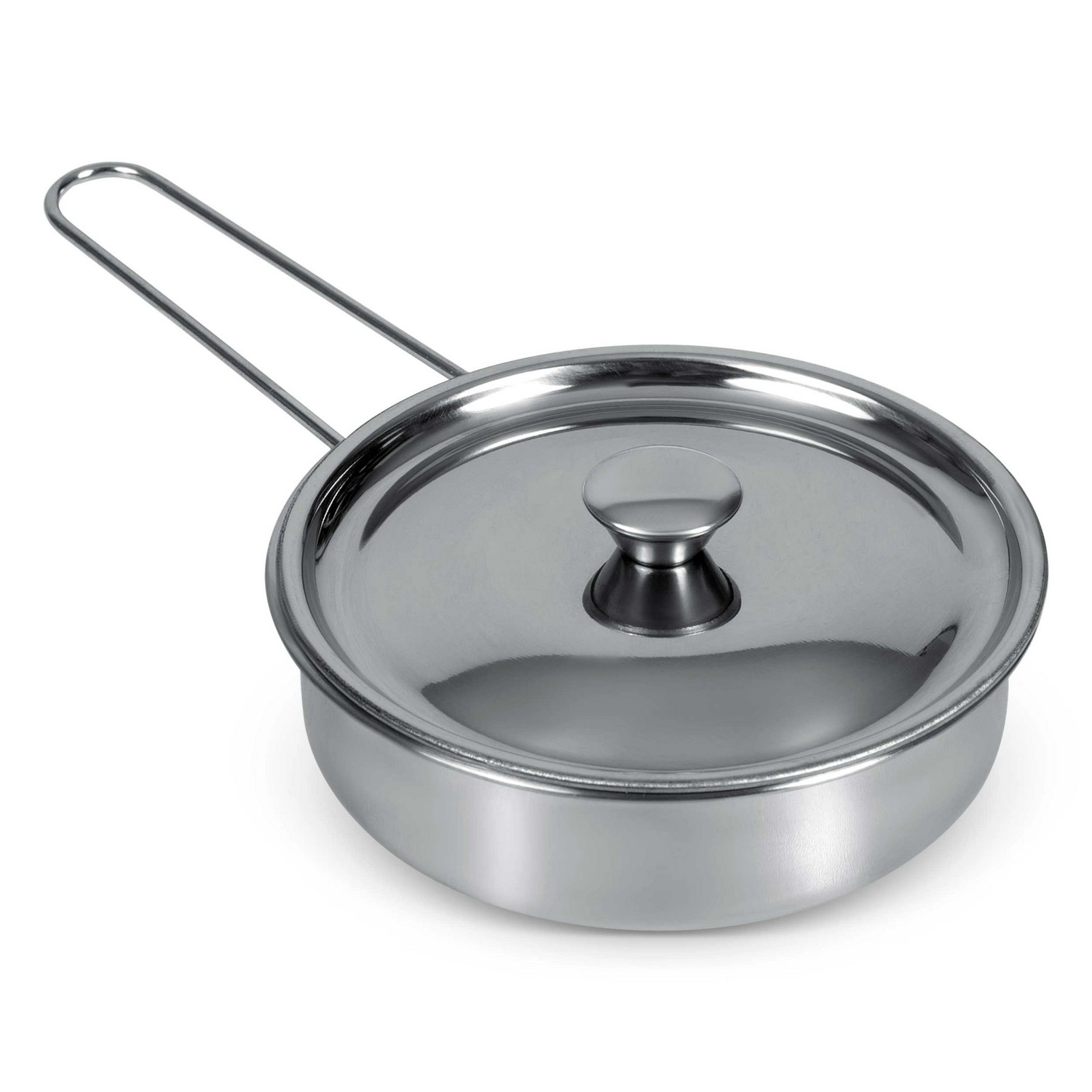 De brede roestvrijstalen pan met zijhandgrepen is ideaal voor het “koken van soep” en roeren, en ligt prettig in de hand van kleine kinderhanden.