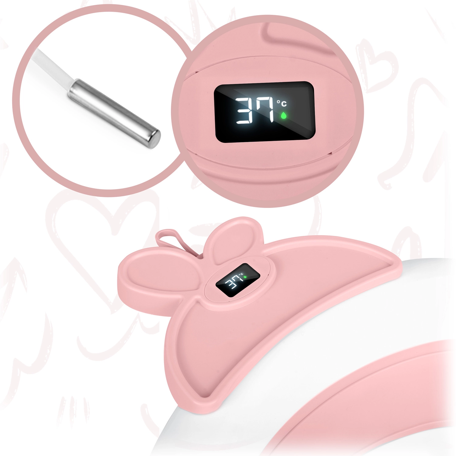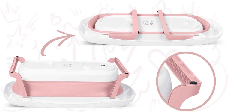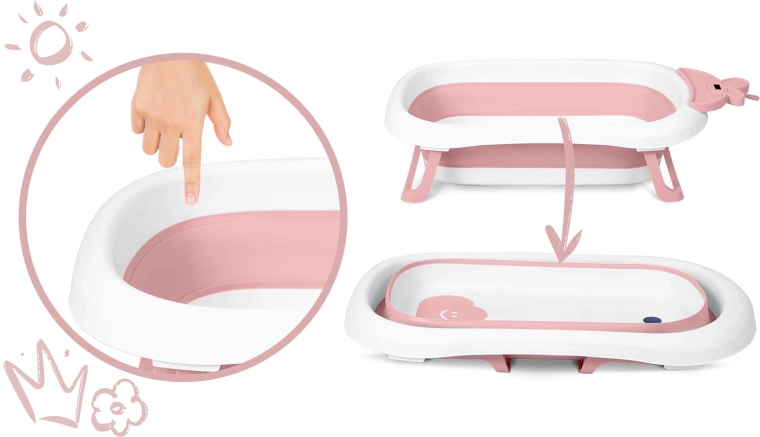 Opvouwbaar kinderbadje met LCD-thermometer, wit/roze