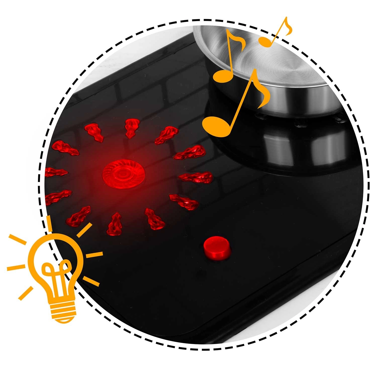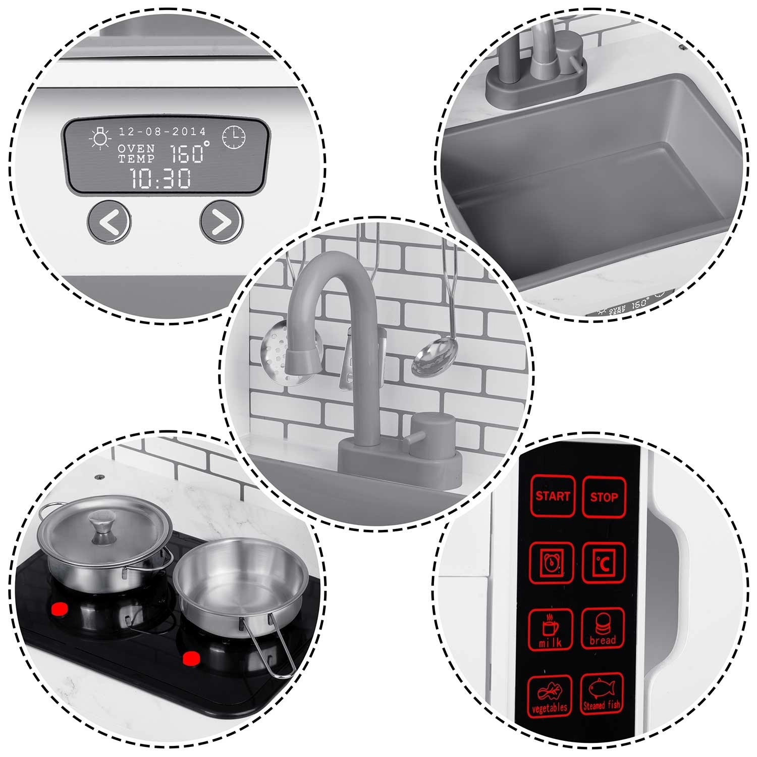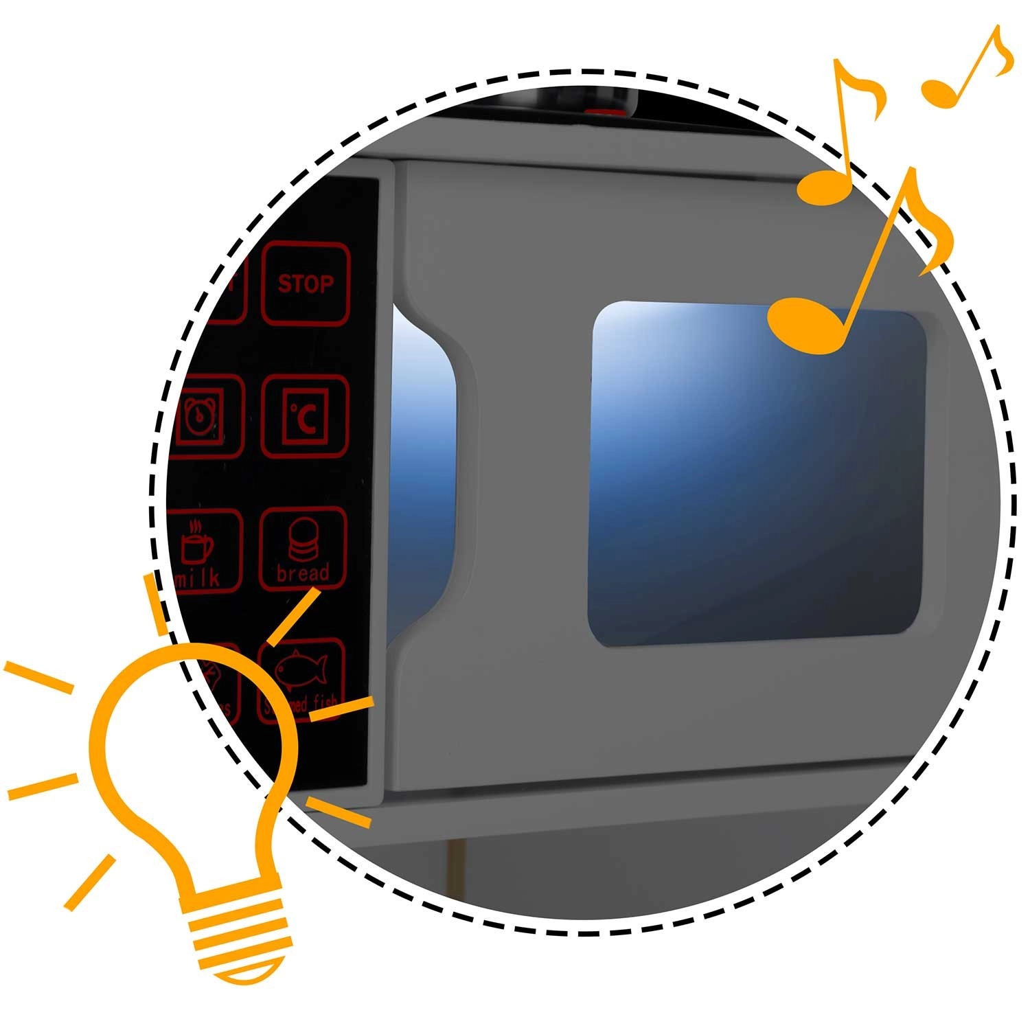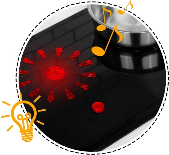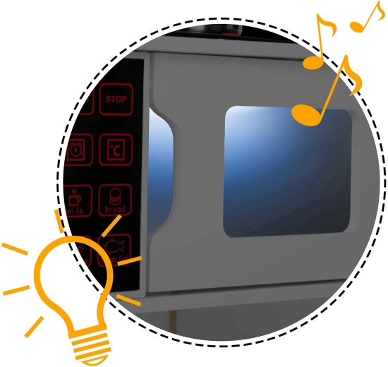 Na het indrukken van de knop lichten de branders op en produceren ze subtiele kookgeluiden, zoals borrelend water – een leuke en veilige nabootsing van een echte keuken.