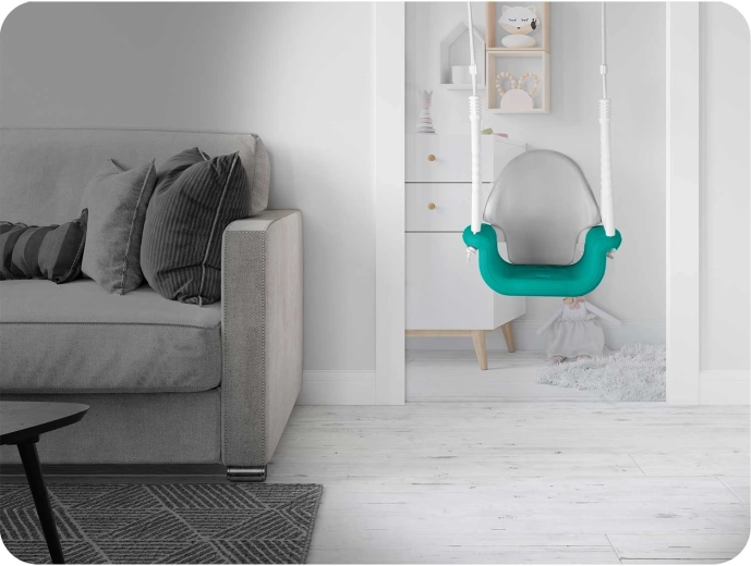 Drie eenvoudig te wisselen modi: met rugleuning en beugel (6–36 mnd), zonder voorbeugel (3–5 jaar) en klassieke schommel zonder rugleuning (5–10 jaar). Eén schommel voor de hele kindertijd.