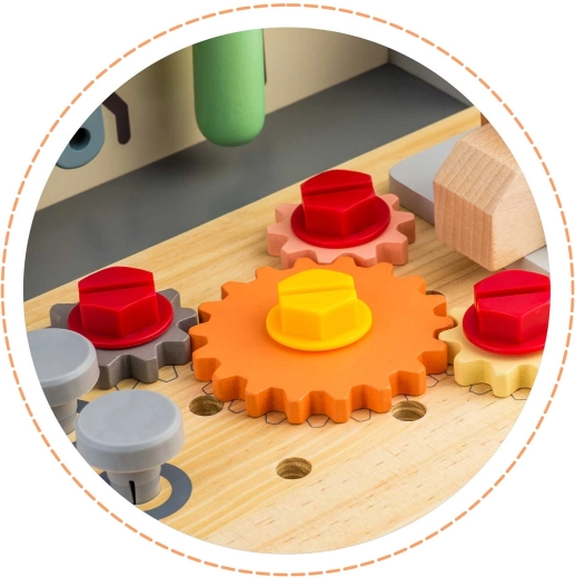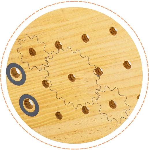 Verbonden, kleurrijke tandwielen bewegen samen wanneer je draait, en ondersteunen zo de fijne motoriek, logica en nieuwsgierigheid van kinderen.
