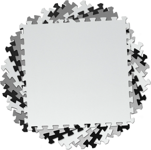 Negen grote delen van 60 × 60 cm worden als puzzel in elkaar gezet – u verbindt ze eenvoudig in een schaakbordpatroon, maakt kleinere matten of creëert 3D-vormen. De antisliptextuur blijft stabiel op zijn plaats en verhoogt de veiligheid tijdens het spelen. Houdt geen stof of huisstofmijt vast, en is daarom ook geschikt voor allergiepatiënten en voor kinderen vanaf 0+ maanden.