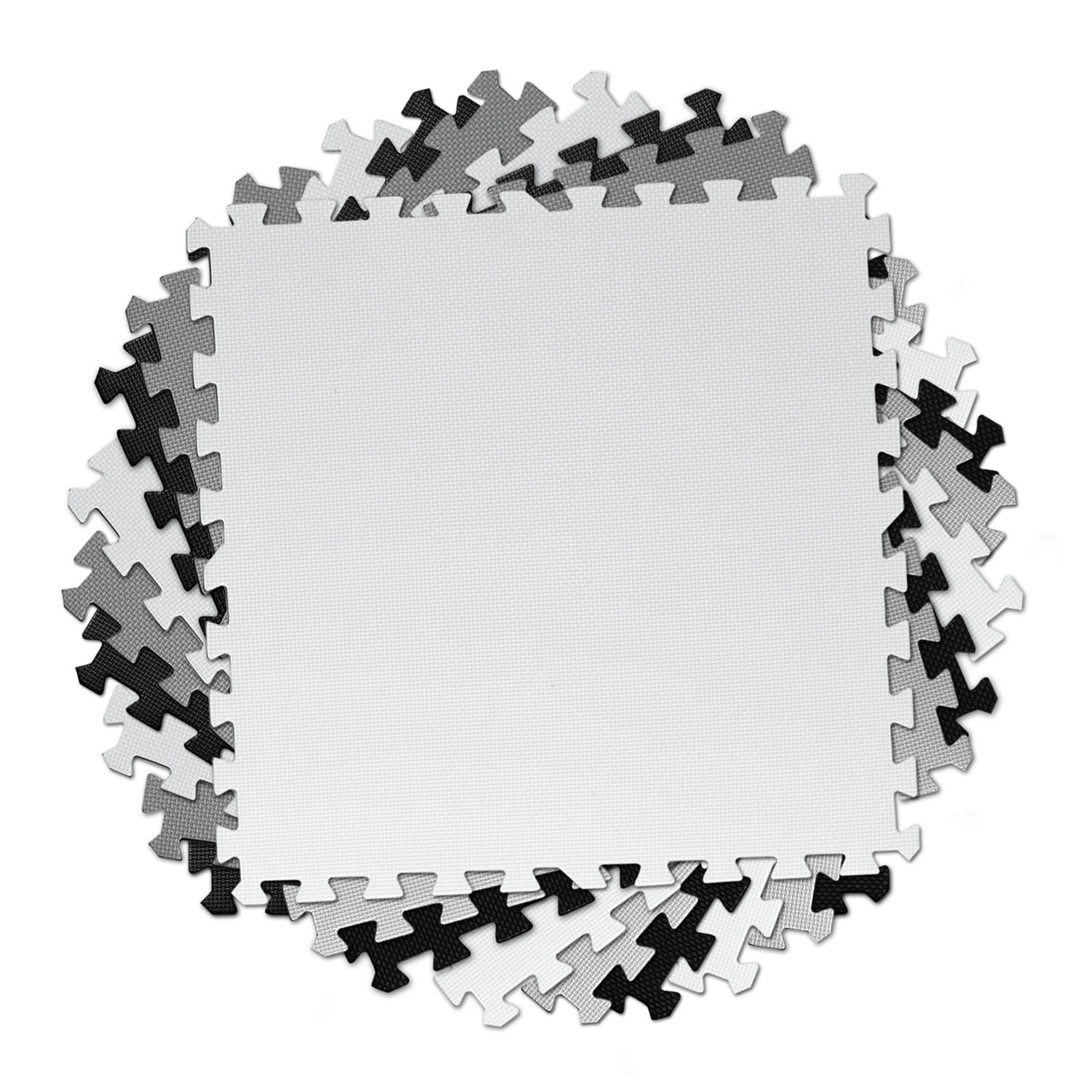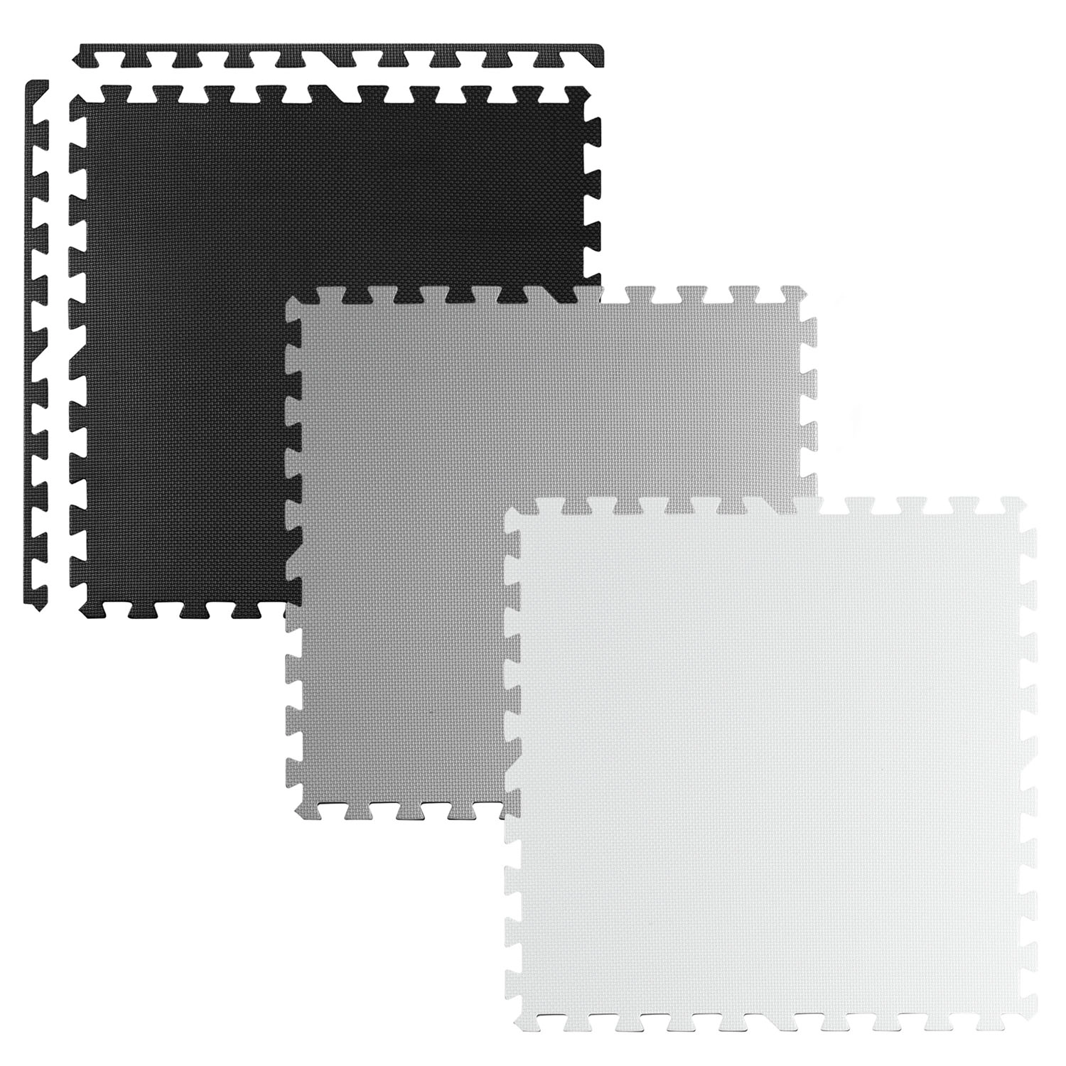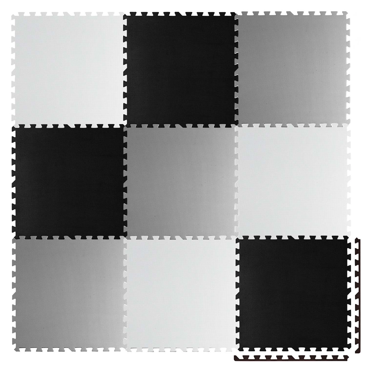 Delen van 60 × 60 cm verbindt u tot diverse vormen: schaakbord, kleinere matten of 3D-constructies. Pas het oppervlak eenvoudig aan naar behoefte.