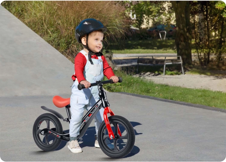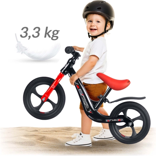 De magnesiumconstructie is stevig en tegelijk zeer licht, waardoor de loopfiets gemakkelijk te besturen en te dragen is. Ideaal voor kleine rijders en ouders onderweg.