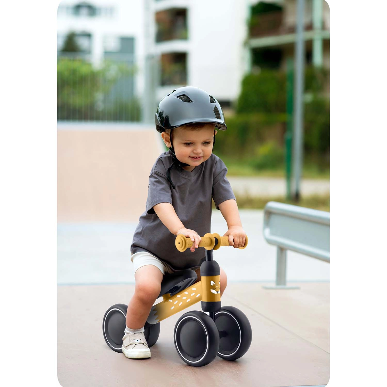 De vier- of driewielvariant met brede wielen biedt uitstekende stabiliteit binnen en buiten en helpt balans en coördinatie te ontwikkelen.