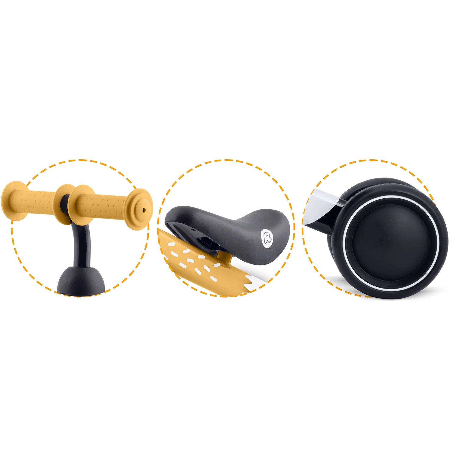 Het zachte zadel met lage zithoogte laat kinderen veilig de grond raken, comfortabel afzetten en op elk moment stoppen.